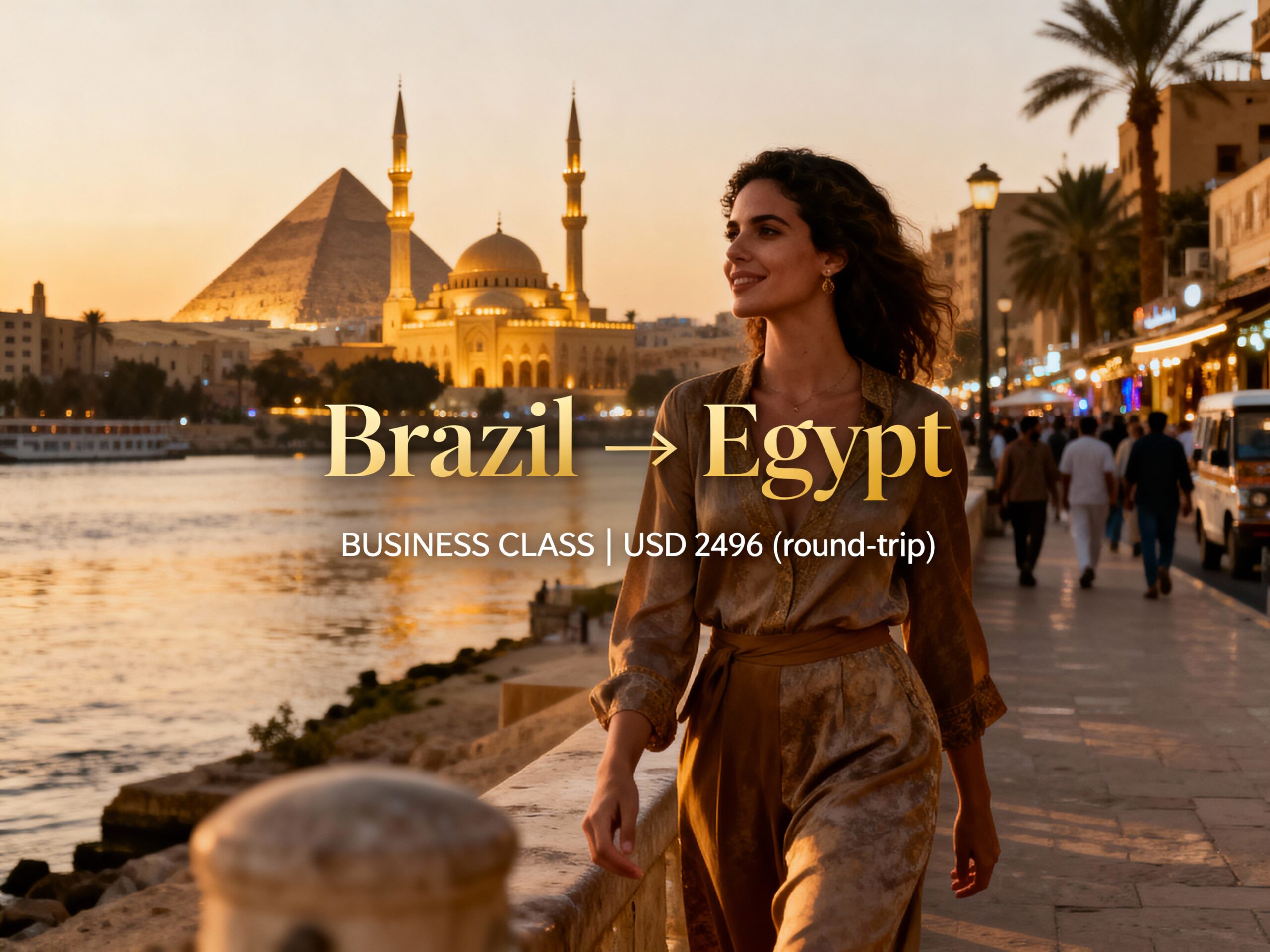Fly in BUSINESS CLASS from Brazil to Egypt starting from only US$2,496 (round-trip)!