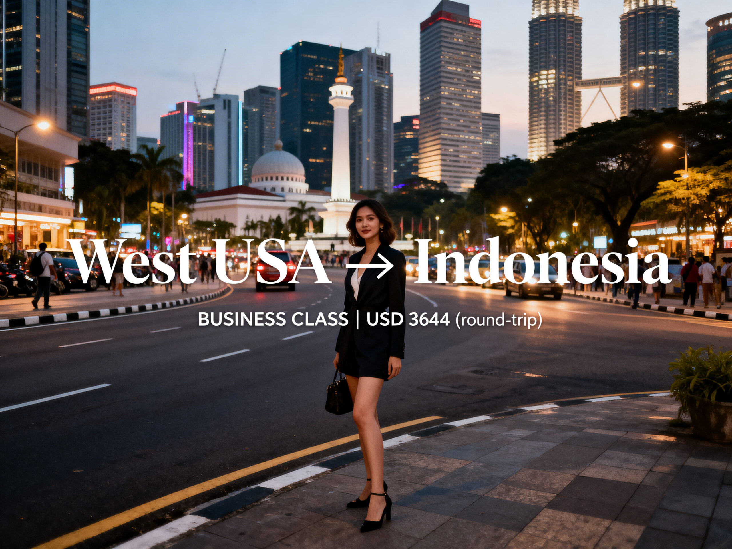 Fly in BUSINESS CLASS from California, USA to Indonesia for only US$ 3,644 (round-trip)