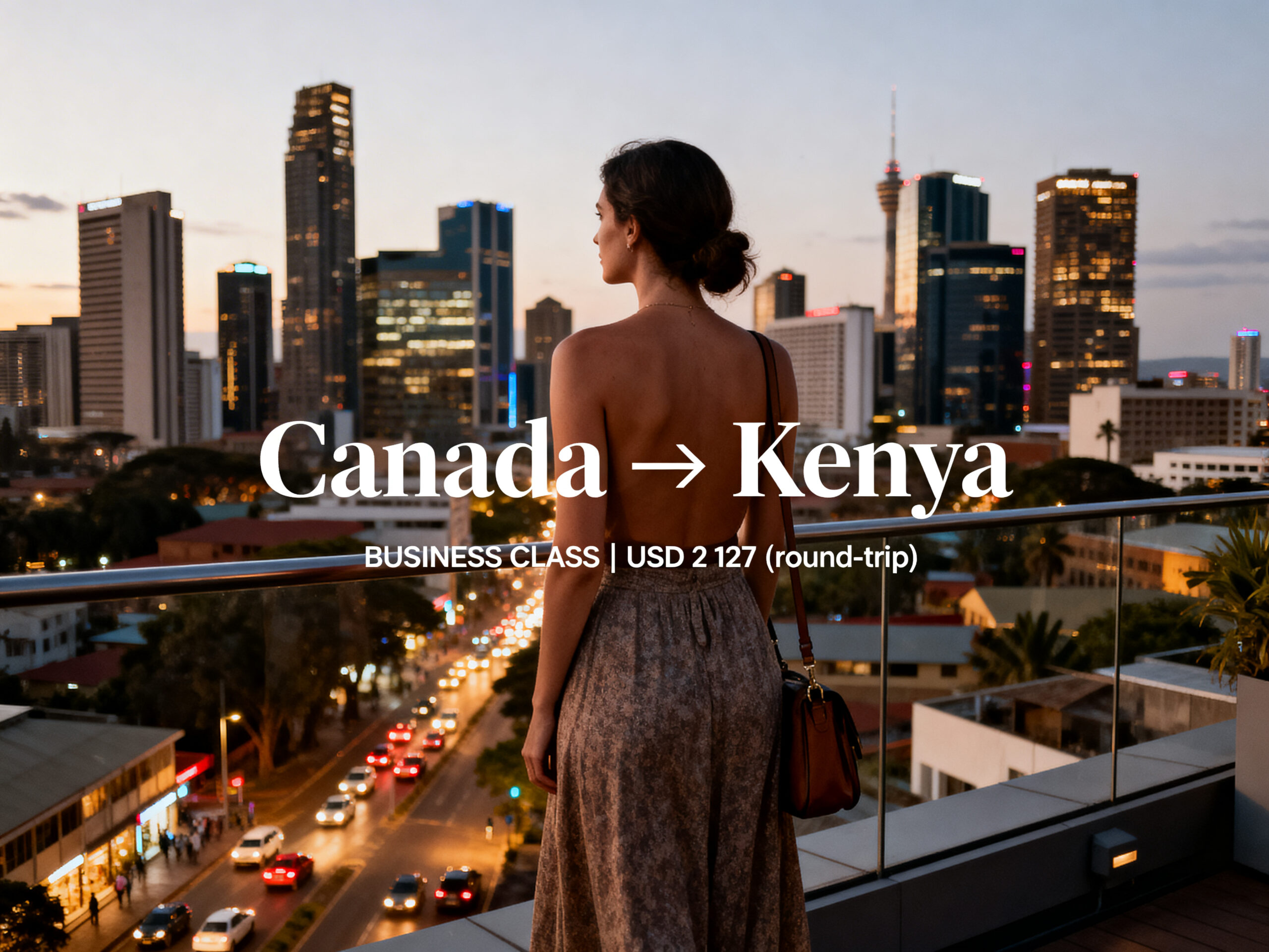 We found cheap Business Class flights from Canada to Kenya for just CA$ 2,912 / US$ 2,127 (round-trip).