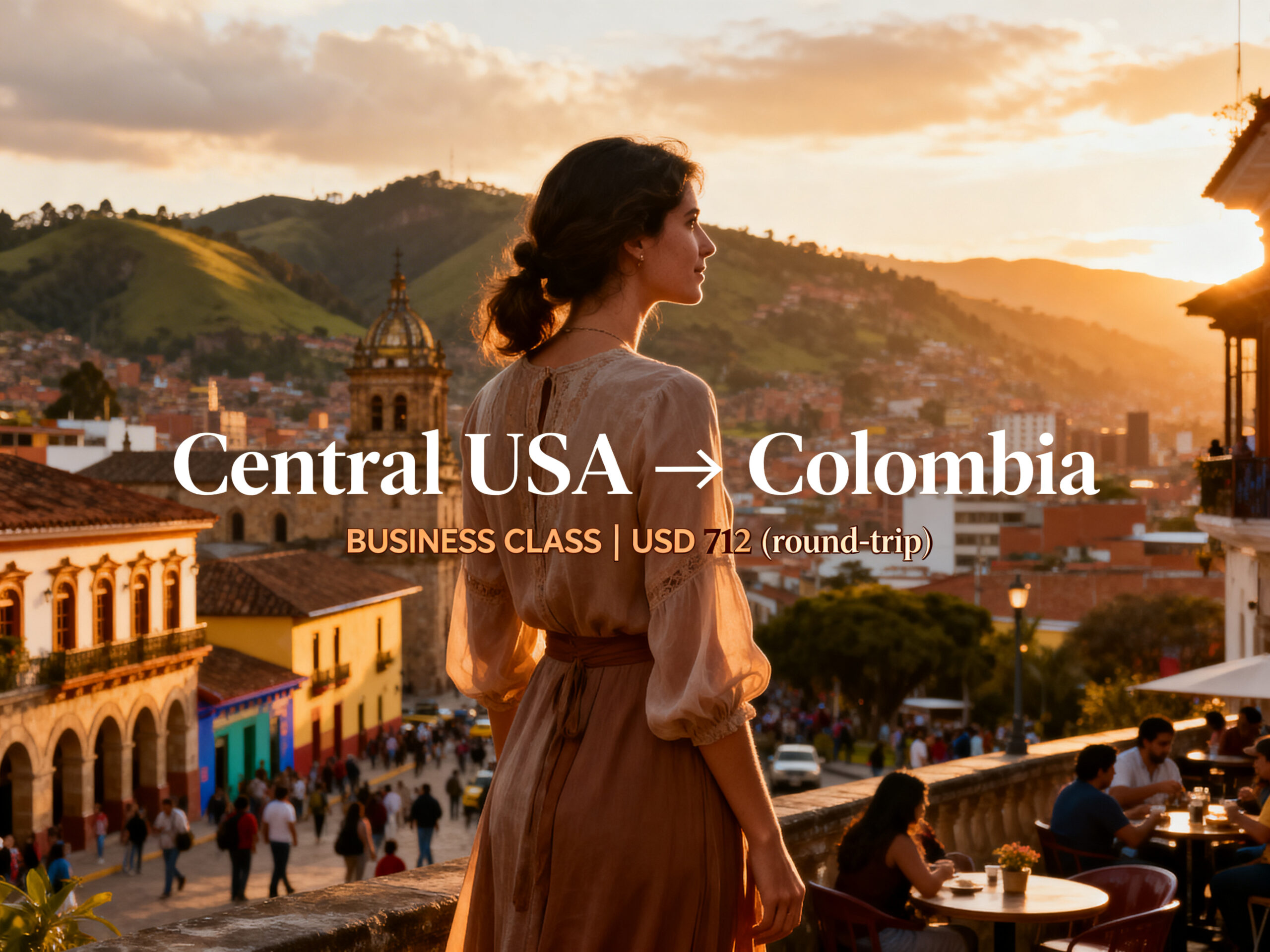 We found good BUSINESS CLASS fares from Central USA to Colombia starting from only US$ 712 (round-trip), about 36% off the usual price!