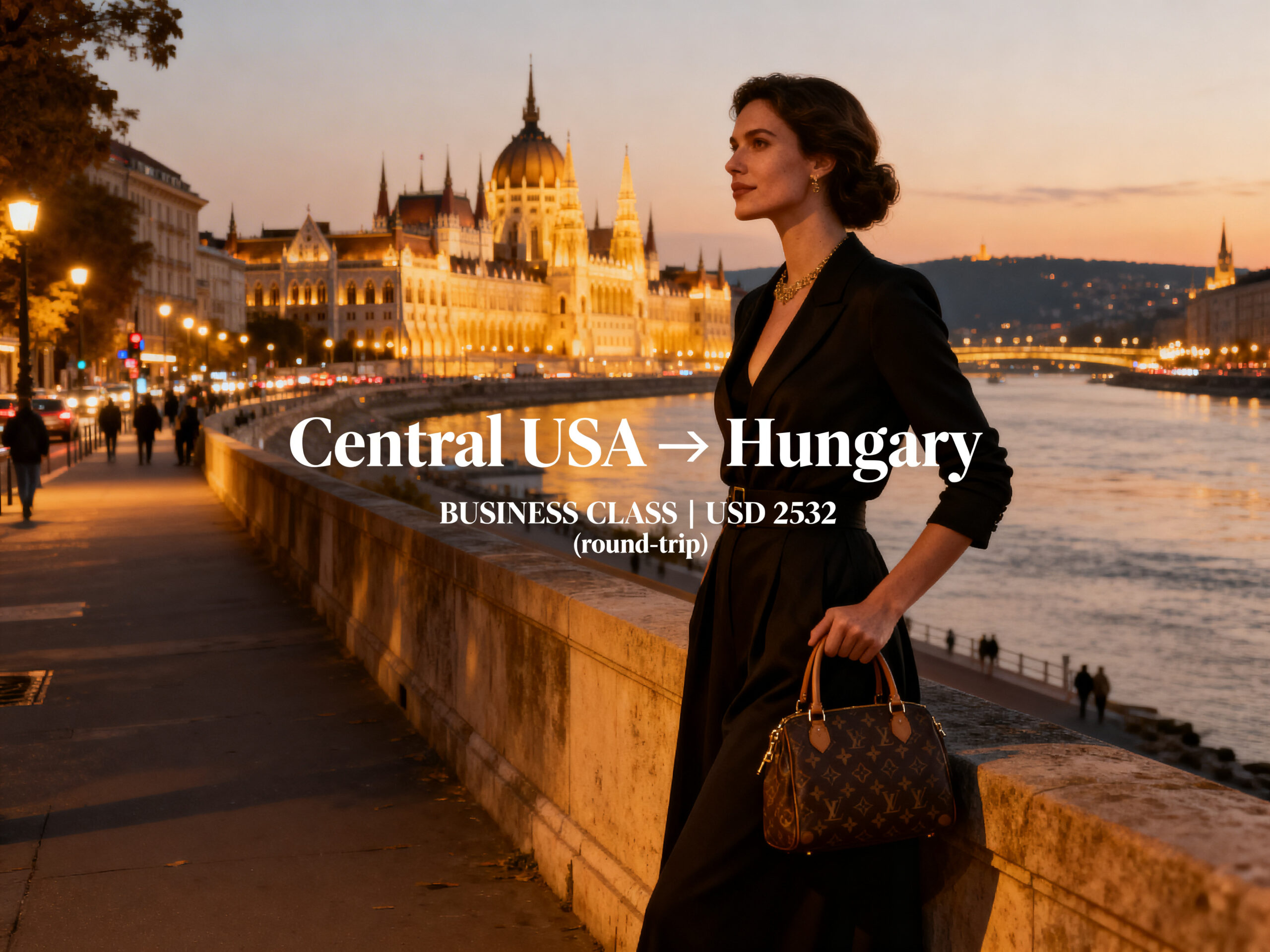 We found good BUSINESS CLASS fares from Central USA to Hungary starting from only US$ 2,532 (round-trip)!