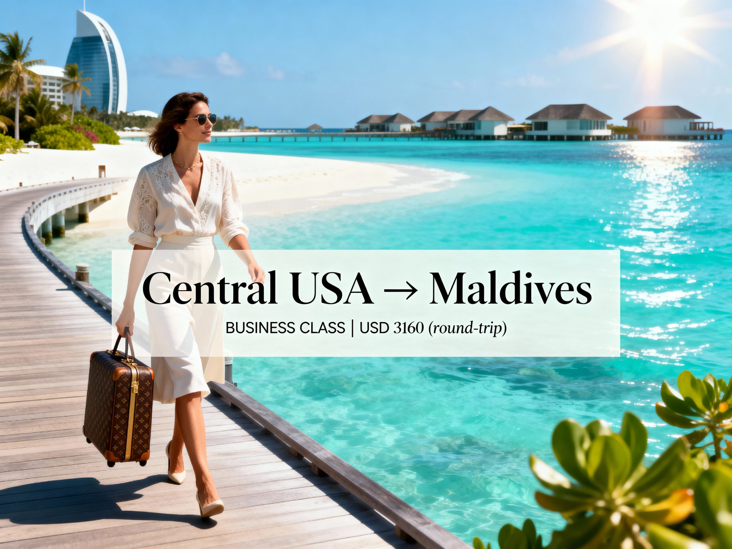 We found good BUSINESS CLASS fares from Central USA to Maldives starting from only US$3,160 (round-trip), about 42% off the usual price!