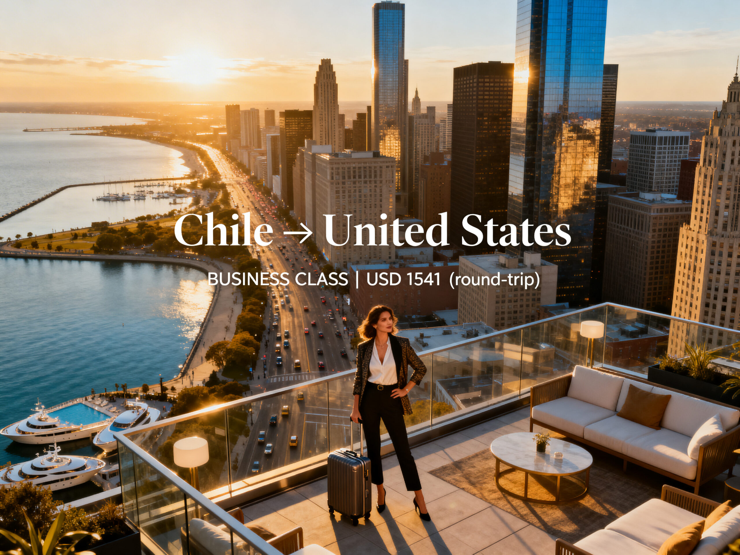 We found excellent BUSINESS CLASS fares from Chile to Central USA starting from only US$ 1,541 (round-trip).