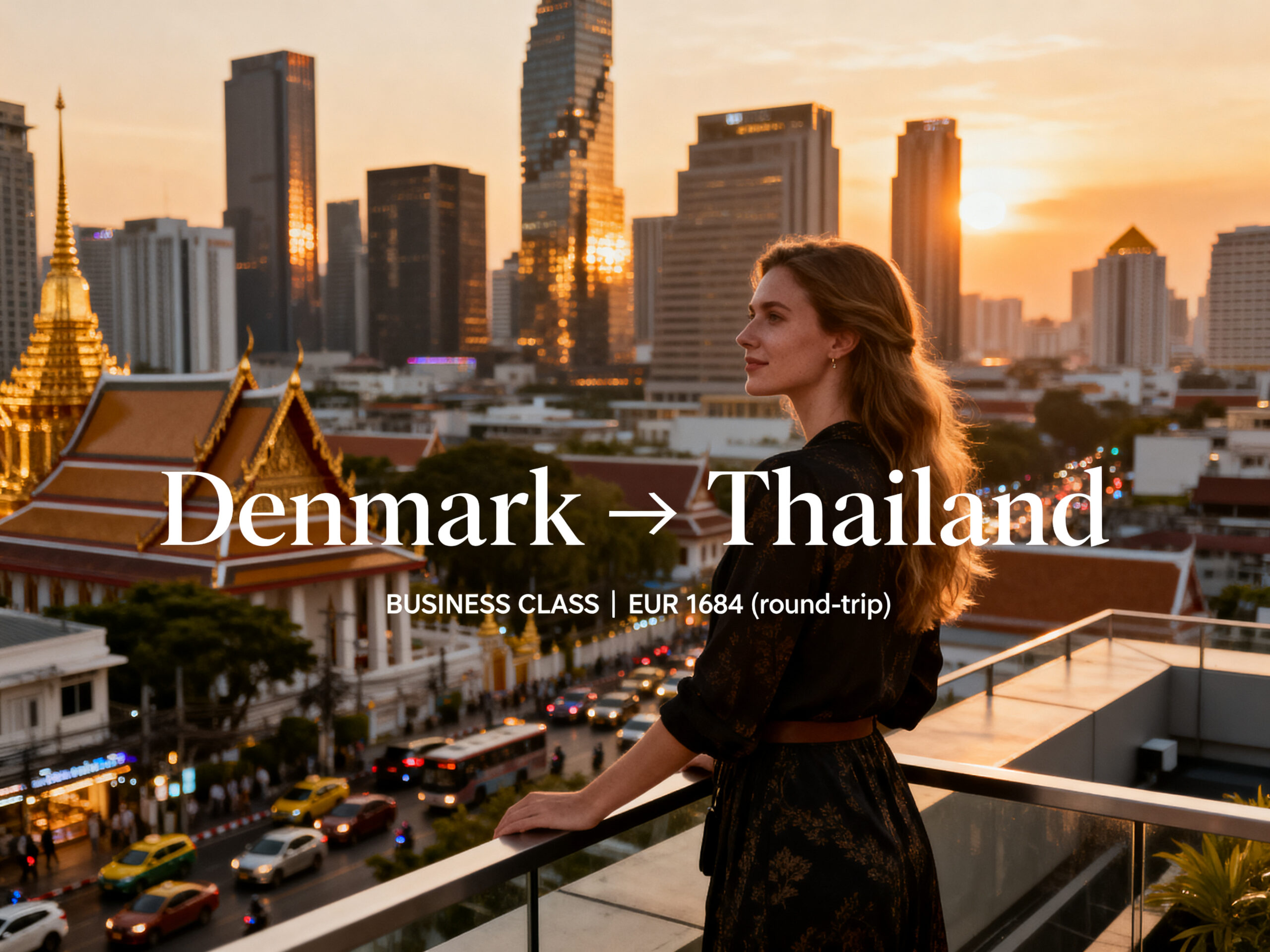 Heading to Thailand with these super cheap Business Class flights from Denmark to Thailand for just €1,684 (round-trip). Don’t miss this great BUSINESS CLASS offer to Thailand at very low prices!