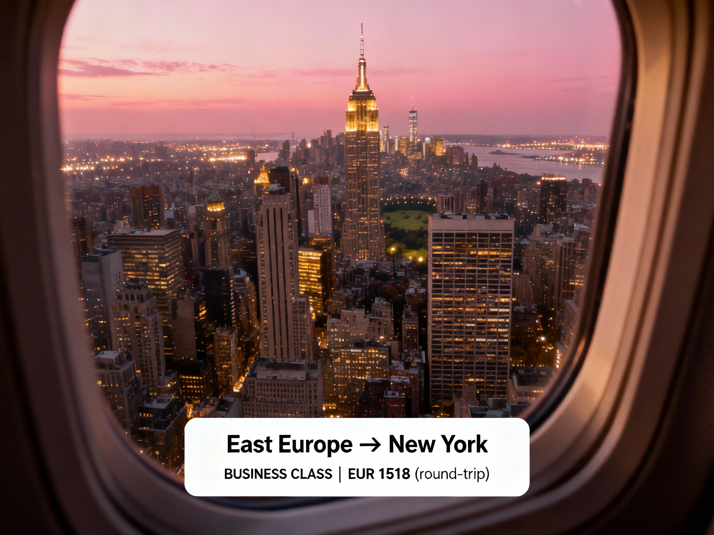 We found cheap Business Class flights from East Europe to the USA for just €1,518 (round-trip).