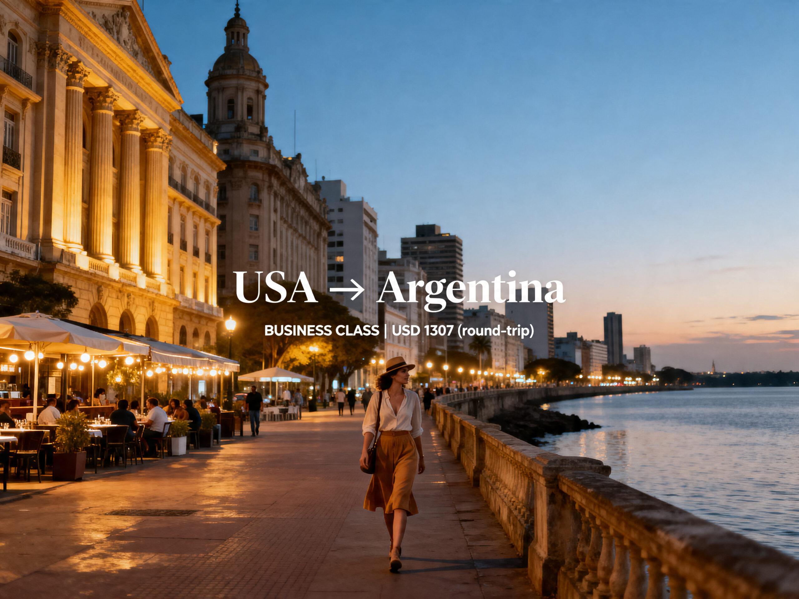 We found cheap business-class flights from Florida, USA to Argentina for just US$ 1,307 (round-trip).