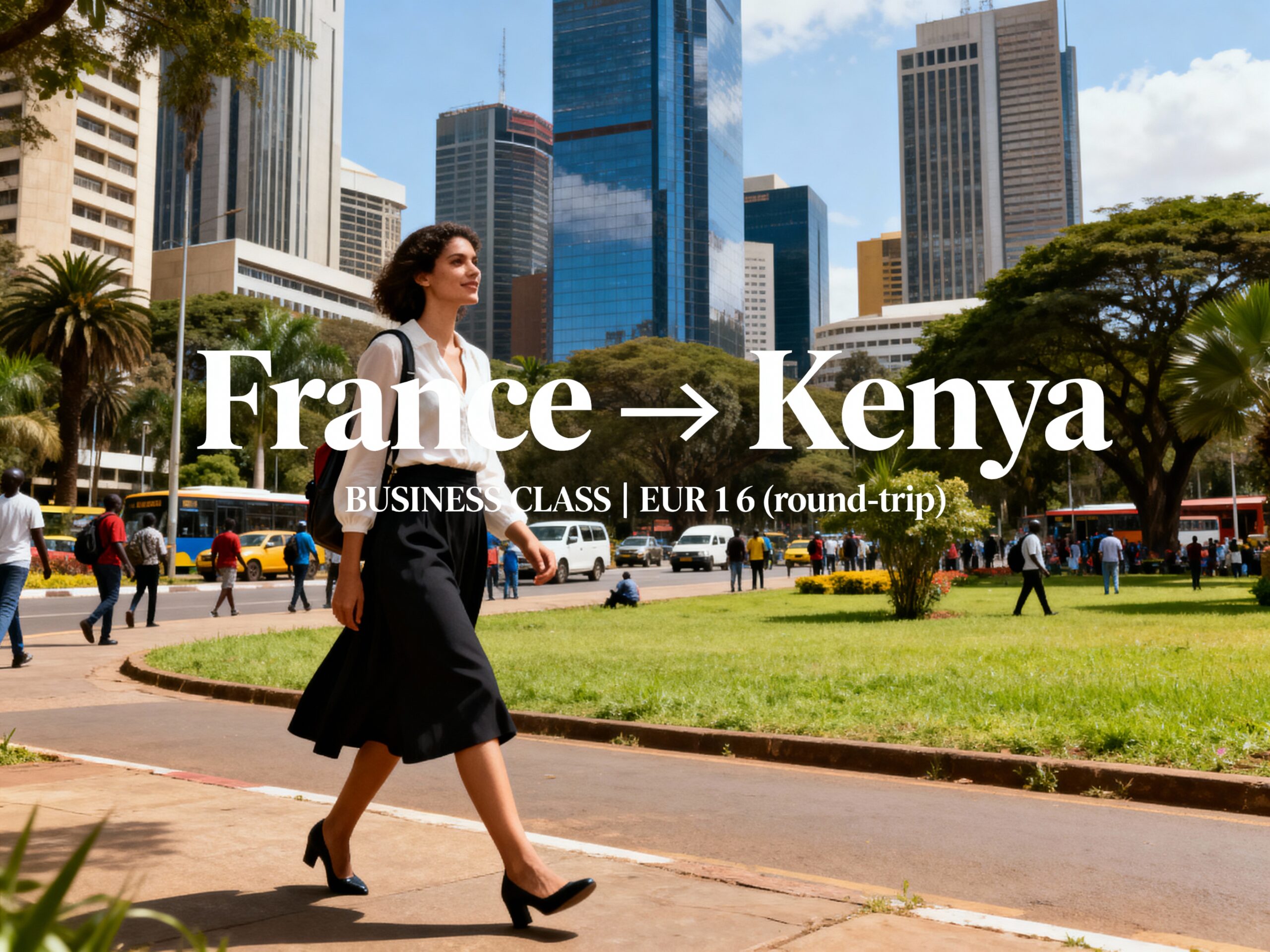 Fly in BUSINESS CLASS from France to Kenya for just €1,6 (round-trip)