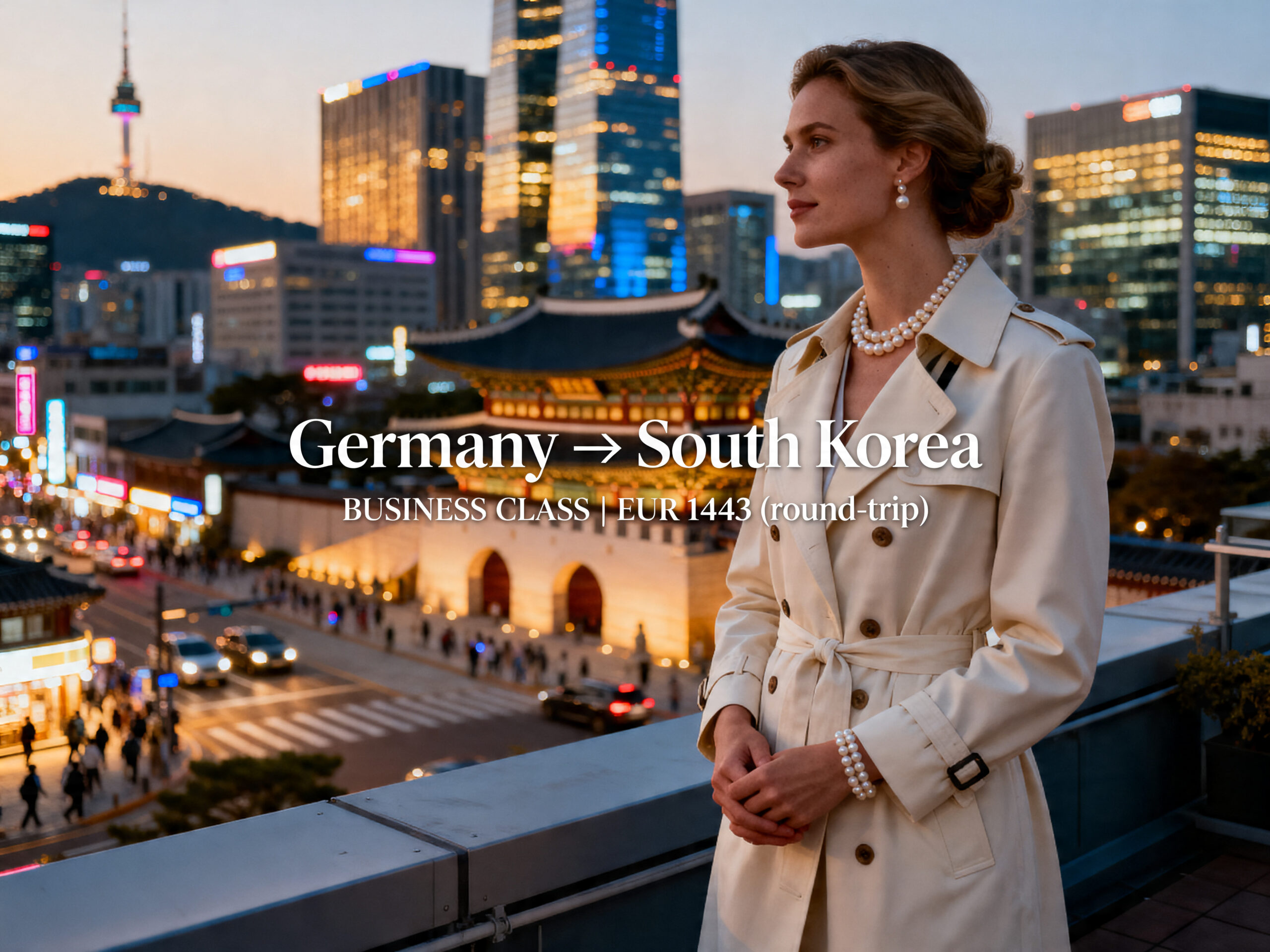 We found some cheap Business Class flights from Germany to South Korea for just €1,443 (round-trip).