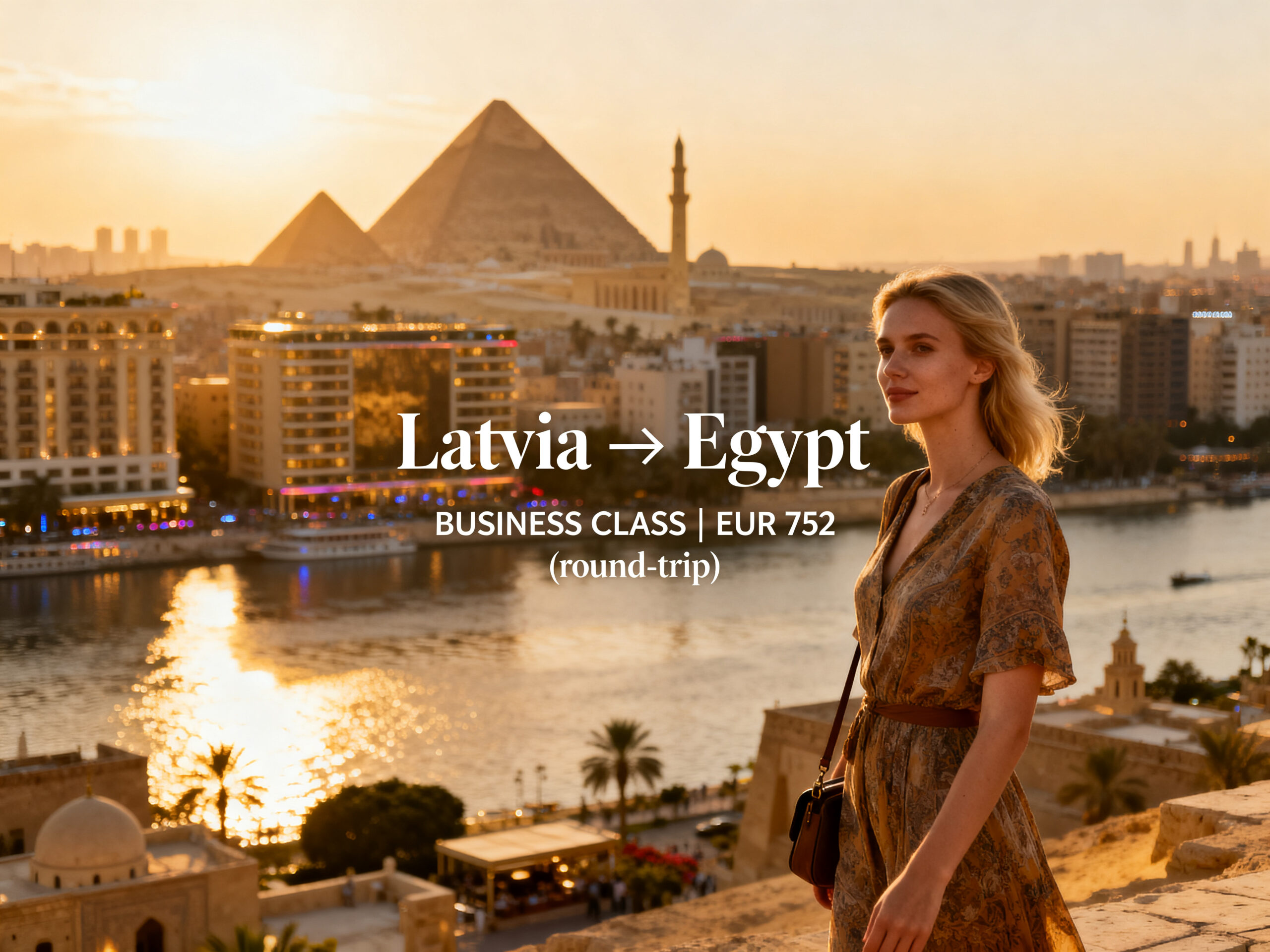 We’ve uncovered an incredible BUSINESS CLASS deal from Latvia to Egypt for only €752 (round-trip) — saving you 44% off the usual fare!