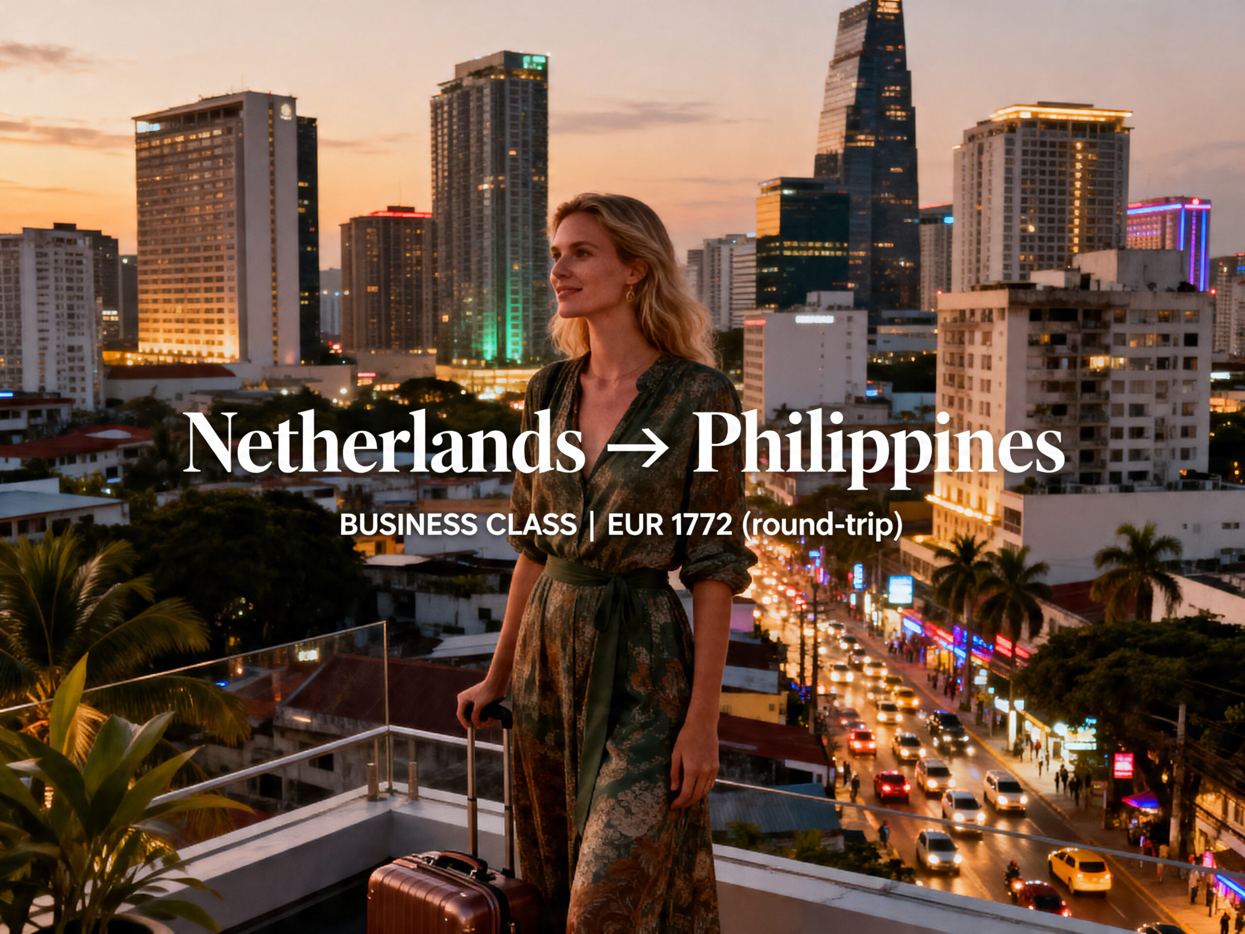 We’ve uncovered an incredible BUSINESS CLASS deal from the Netherlands to Philippines for just €1,772 — saving you a fantastic 30% OFF the usual fare!