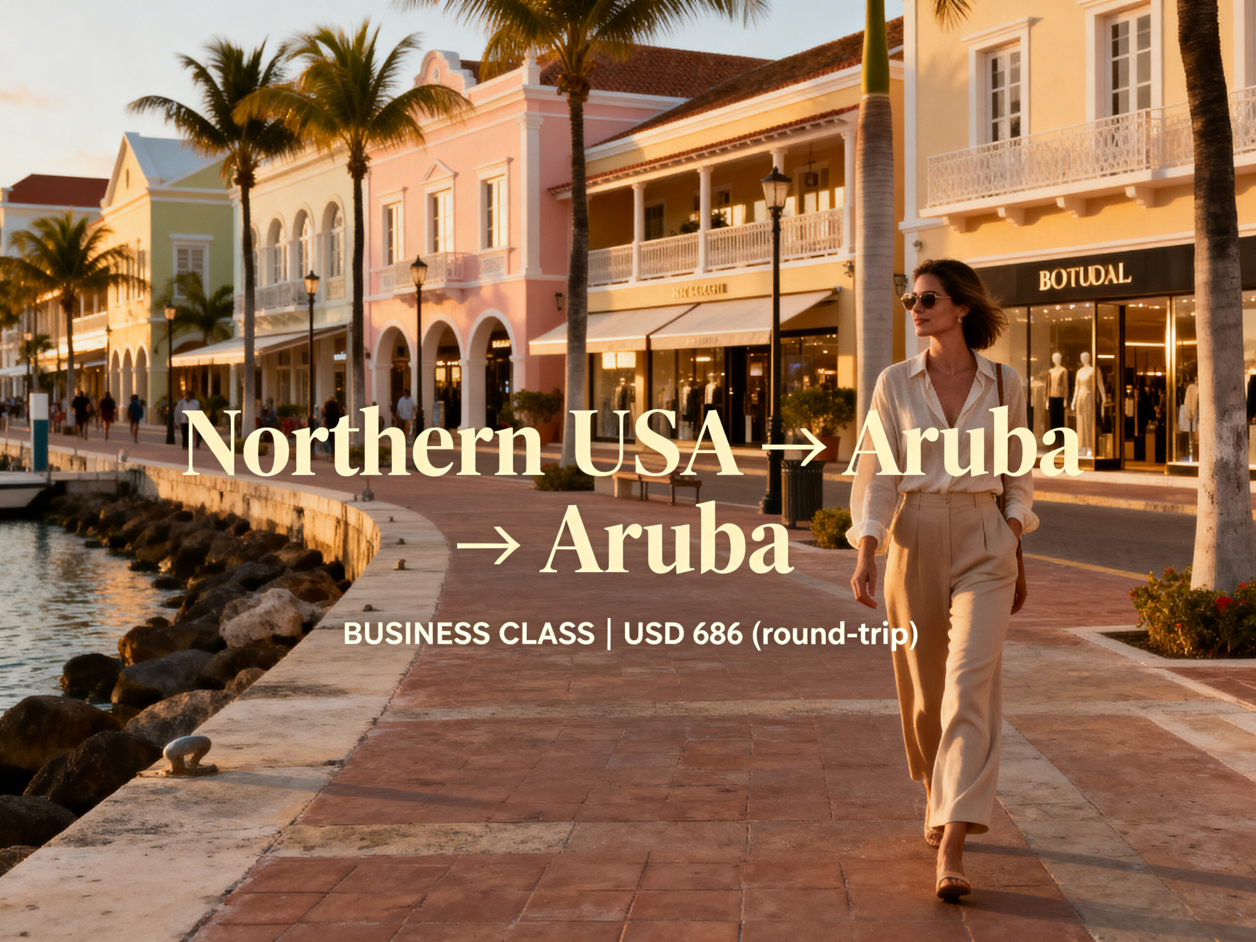 Fly in BUSINESS CLASS from Northern USA to Aruba for only US$ 686 (round-trip)