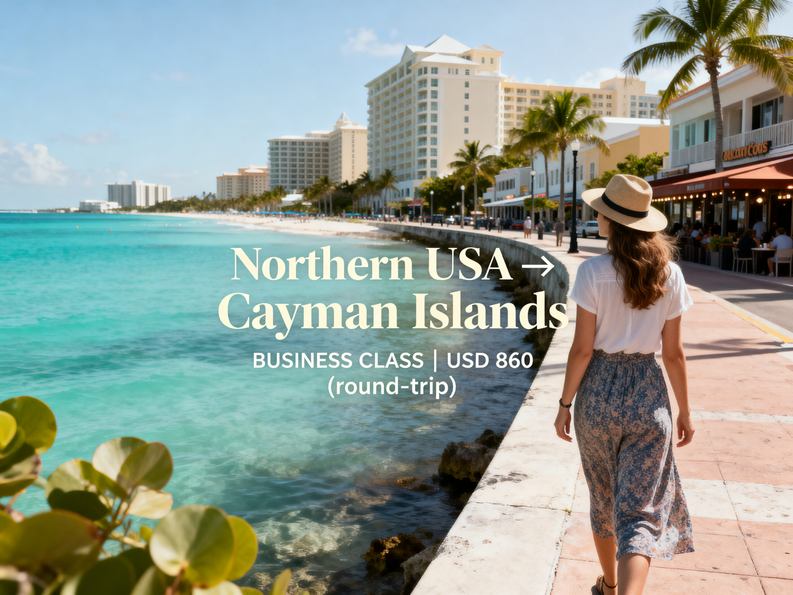 We found excellent BUSINESS CLASS fares from Northern USA to the Cayman Islands starting from only US$ 860 (round-trip).