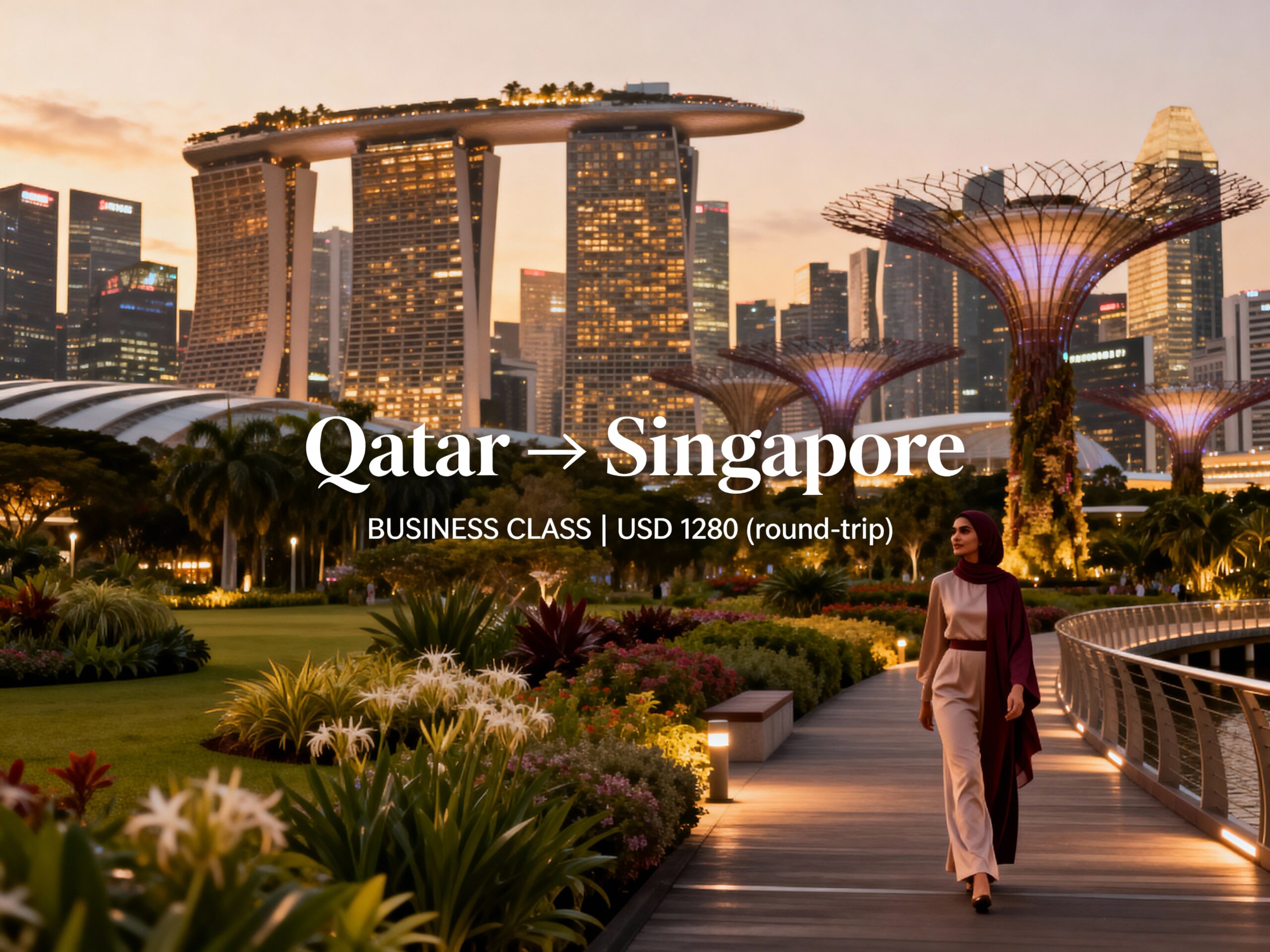 Fly in BUSINESS CLASS from Qatar to Singapore from only US$ 1,280 (round-trip)!