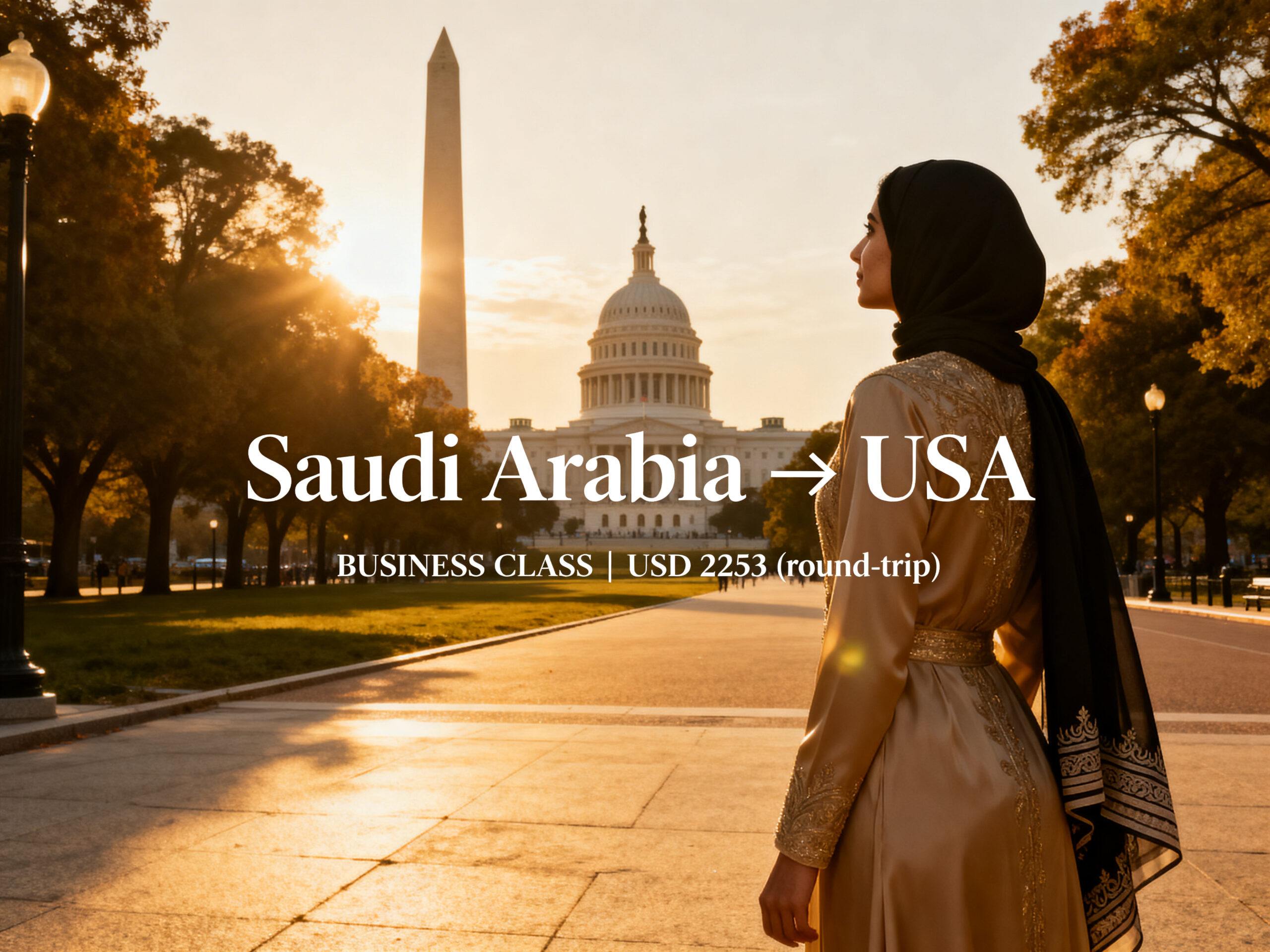 Fly in BUSINESS CLASS from Saudi Arabia to the USA from US$ 2,253 (round-trip)