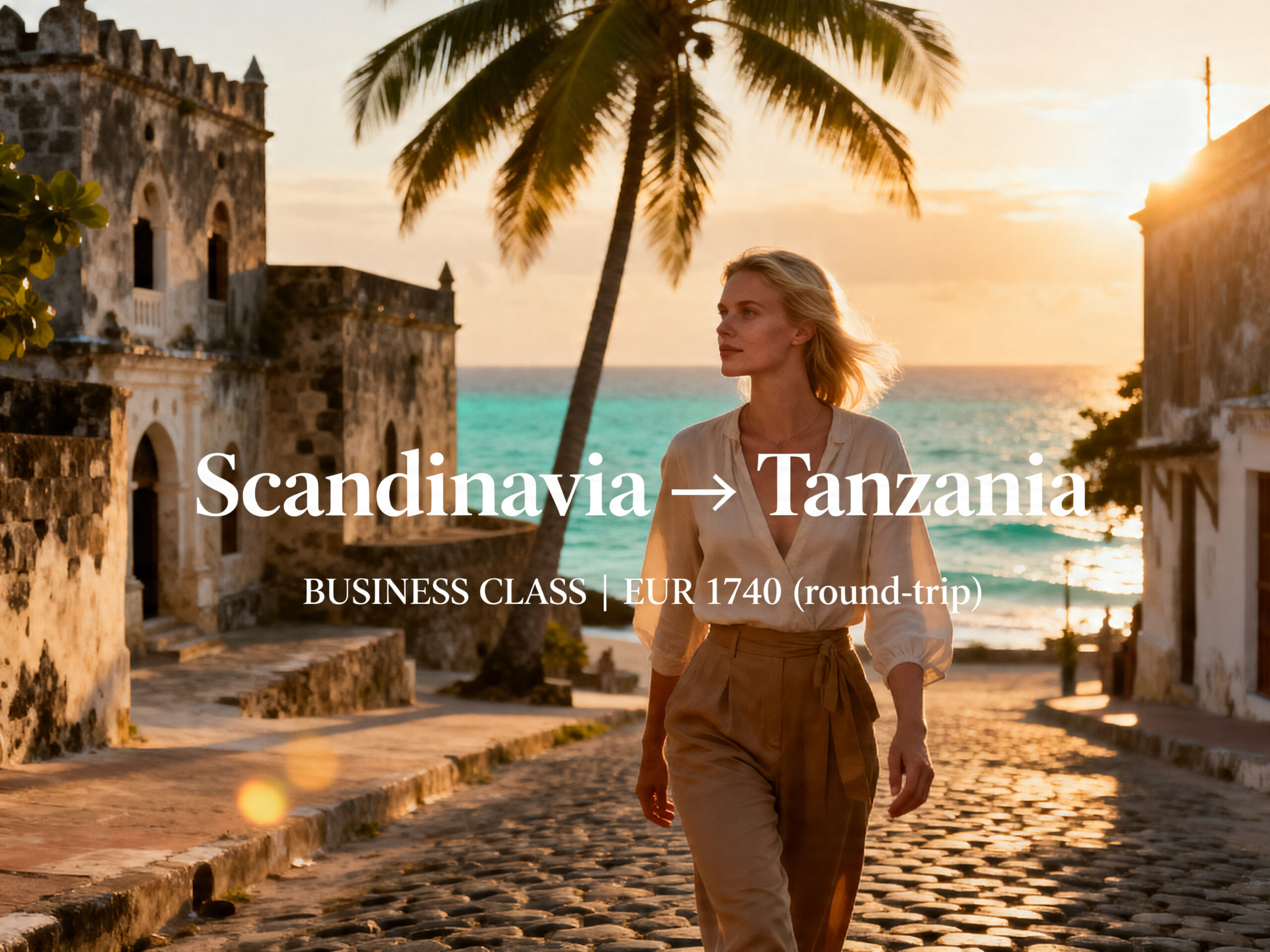 Fly in BUSINESS CLASS from Scandinavia to Zanzibar for just €1,740 (round-trip)