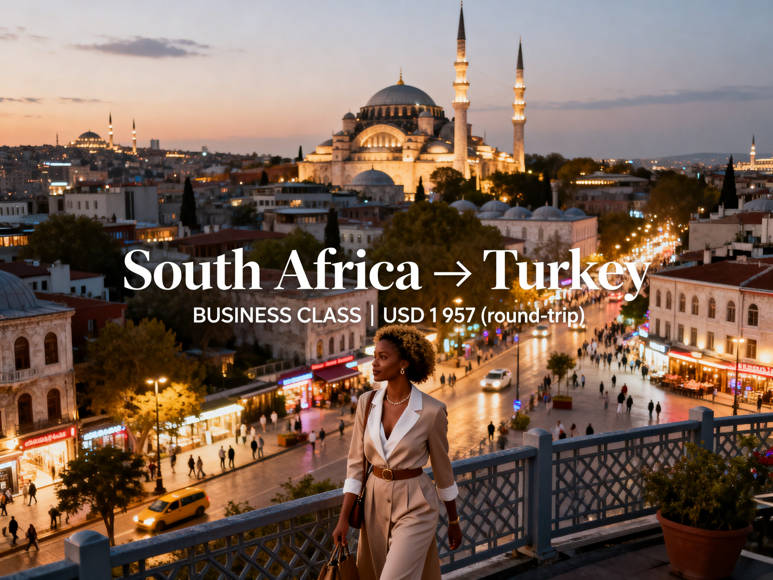 Fly in BUSINESS CLASS from South Africa to Turkey from US$ 1,957 (round-trip)
