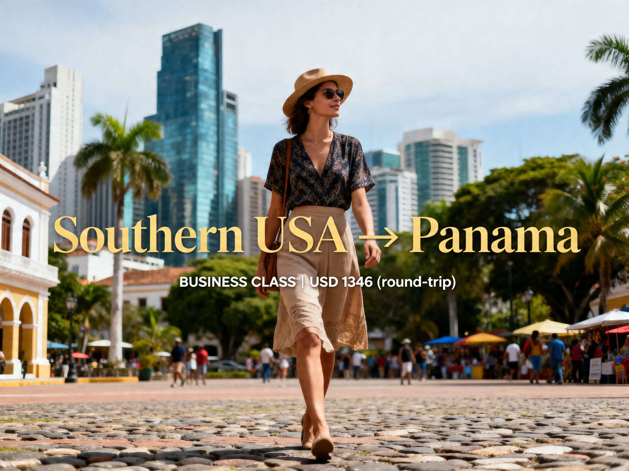 Now! You can grab cheap BUSINESS CLASS flights from Southern USA to Panama for just US$1,346 (round-trip).