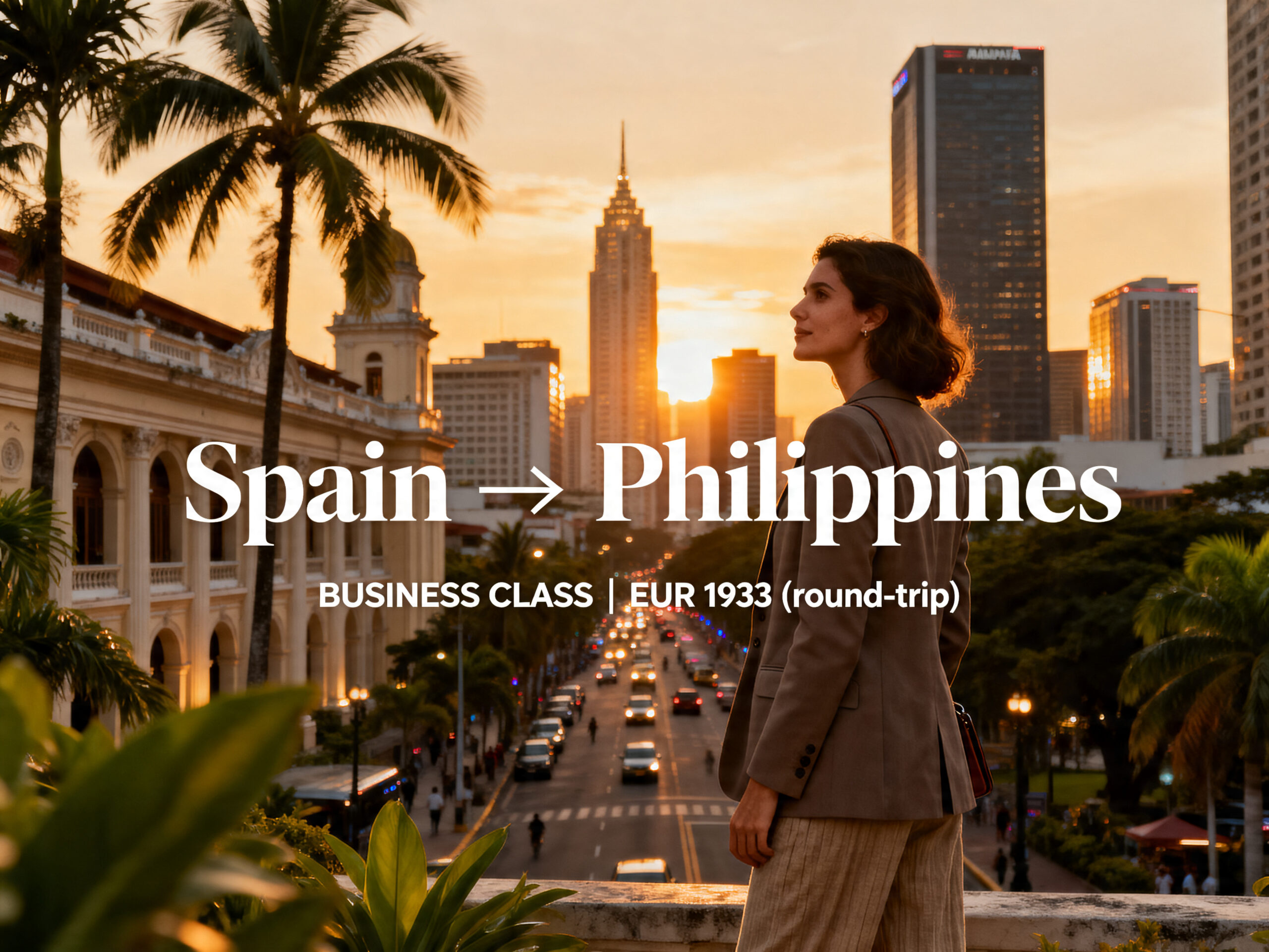We’re thrilled to announce an unbeatable Business Class offer from Spain to the Philippines at just €1,933 (round-trip), giving you a fantastic 28% discount off the regular fare!
