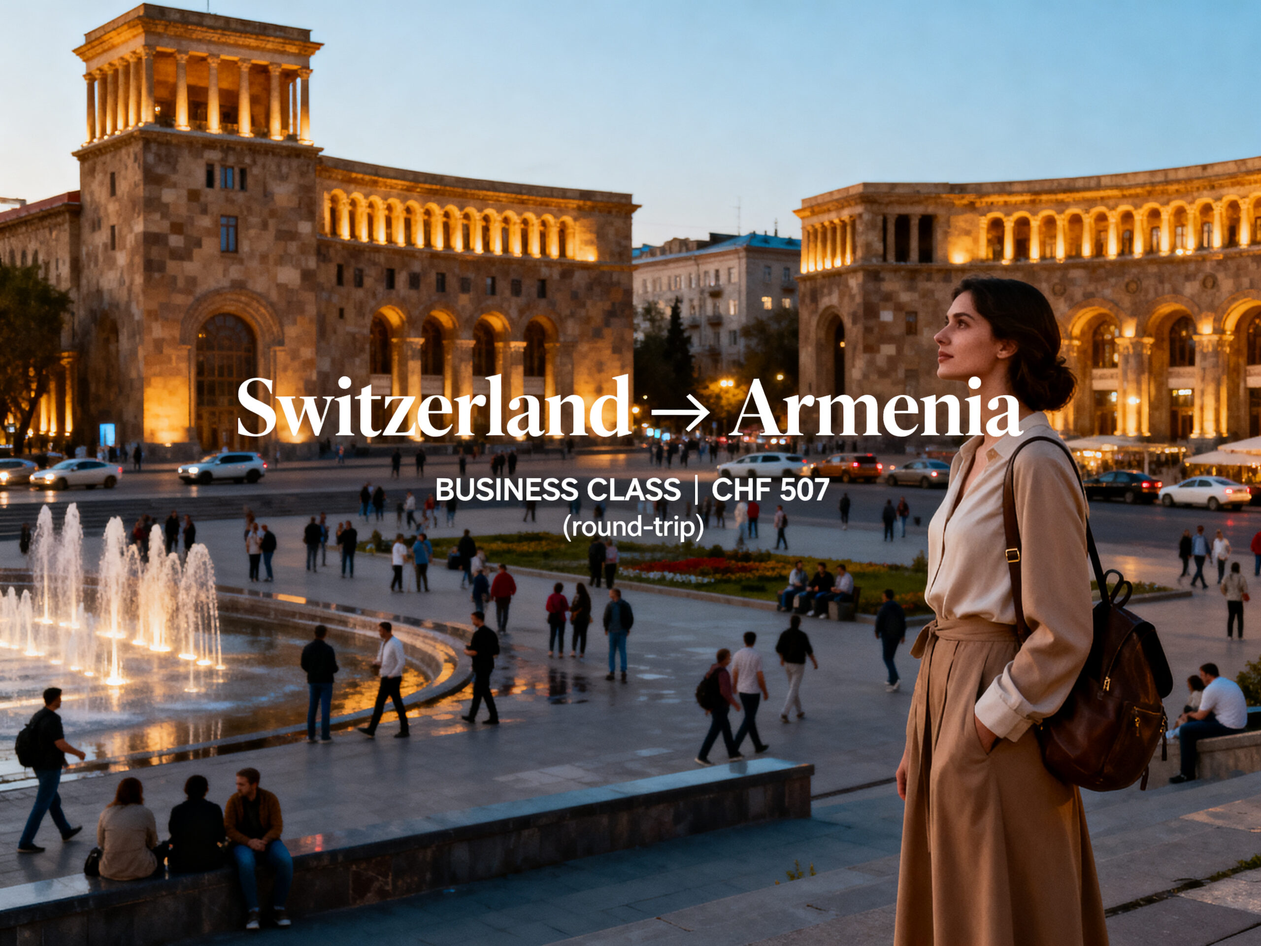 Now! You can grab cheap Business Class flights from Switzerland to Armenia for just CHF 507 (round-trip).