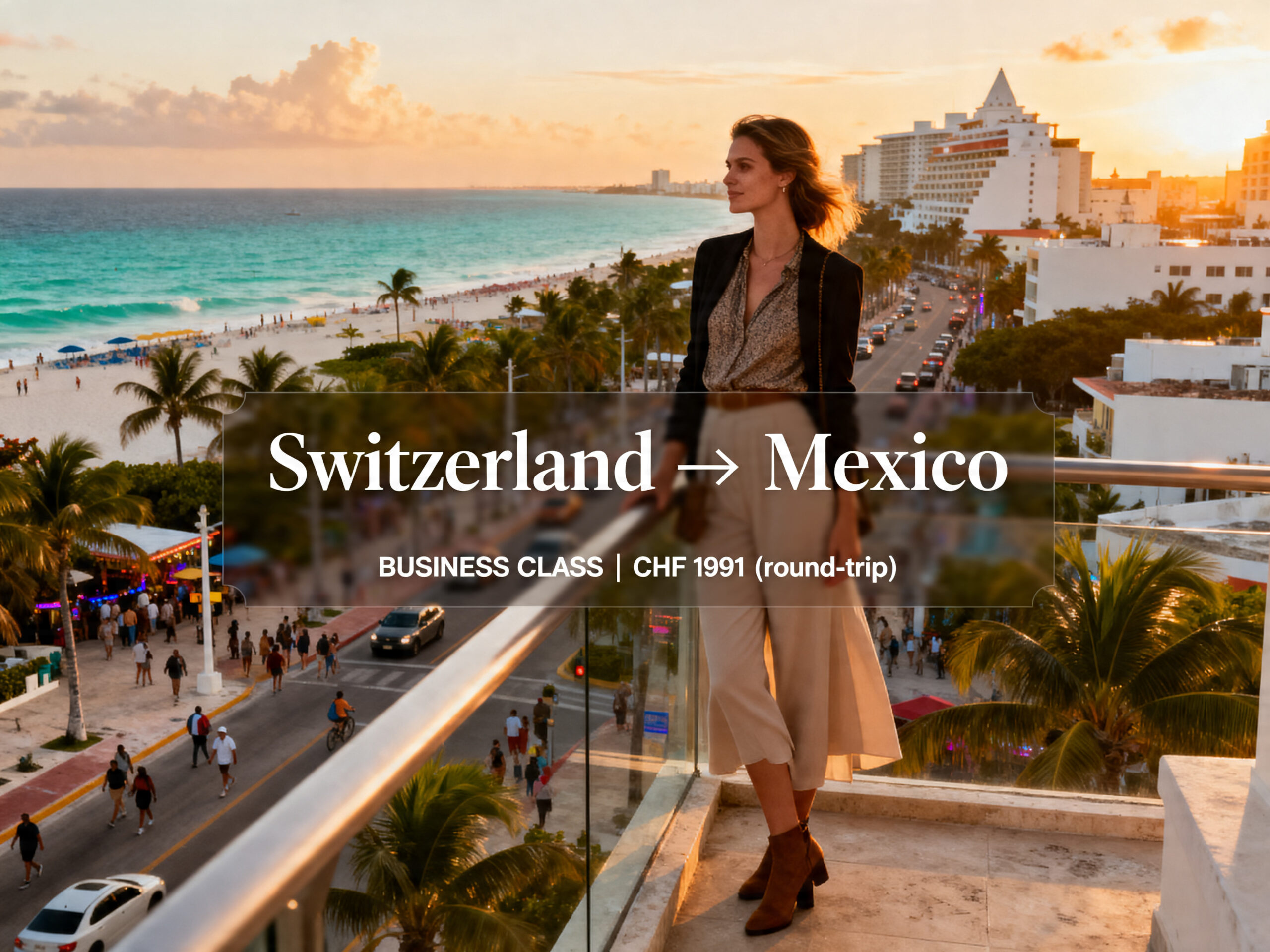 Don’t miss this great Business Class deal from Switzerland to Mexico at a very low price.