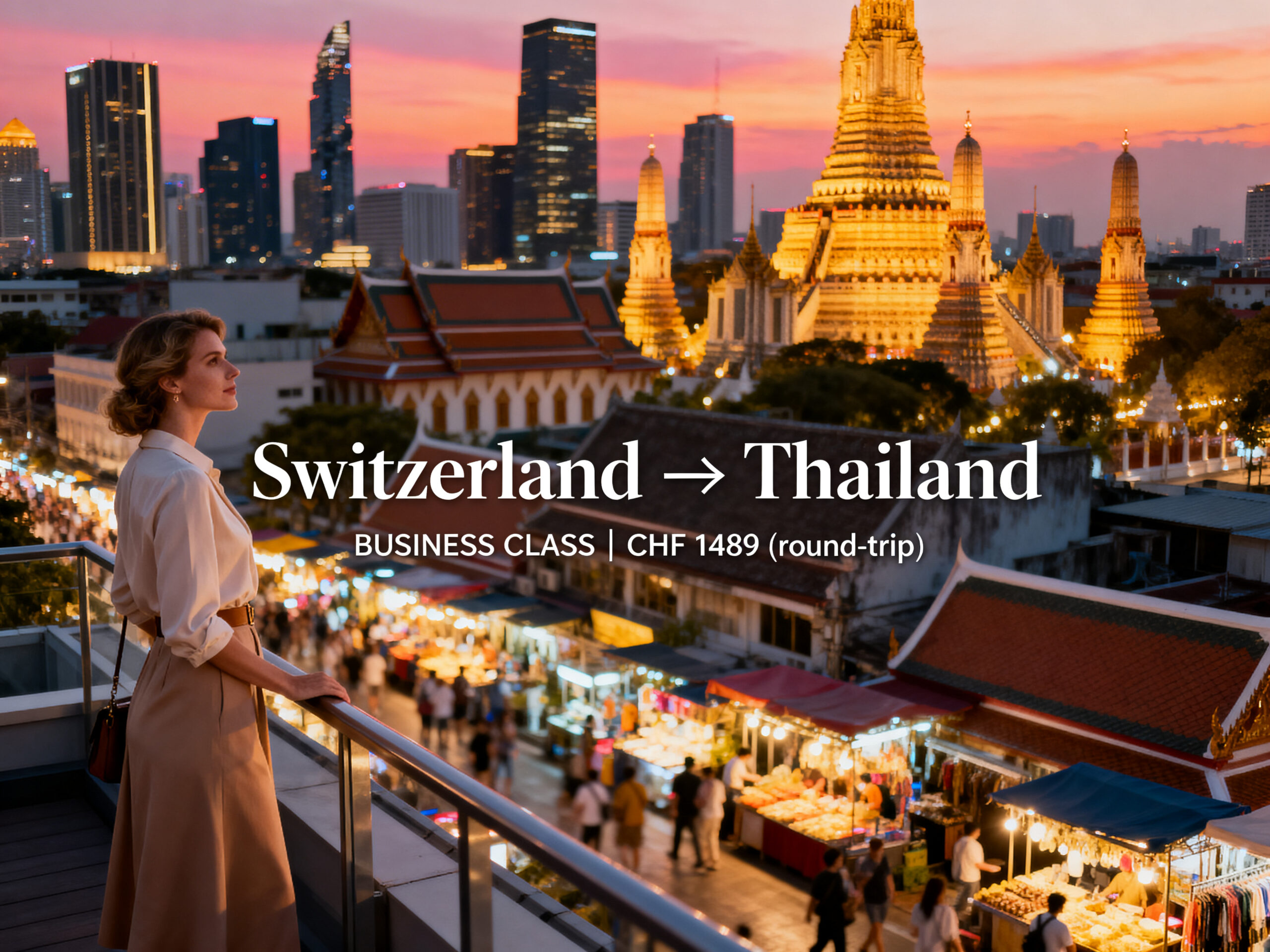 We found a decent deal to fly in Business Class from Switzerland to Thailand for just 1,489 CHF (round trip).