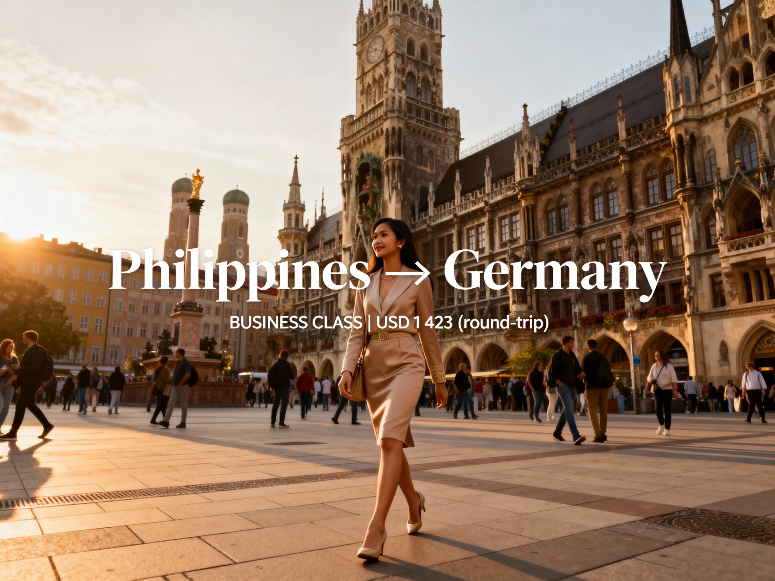 Fly in BUSINESS CLASS from the Philippines to Germany for just US$1,423 (round-trip)