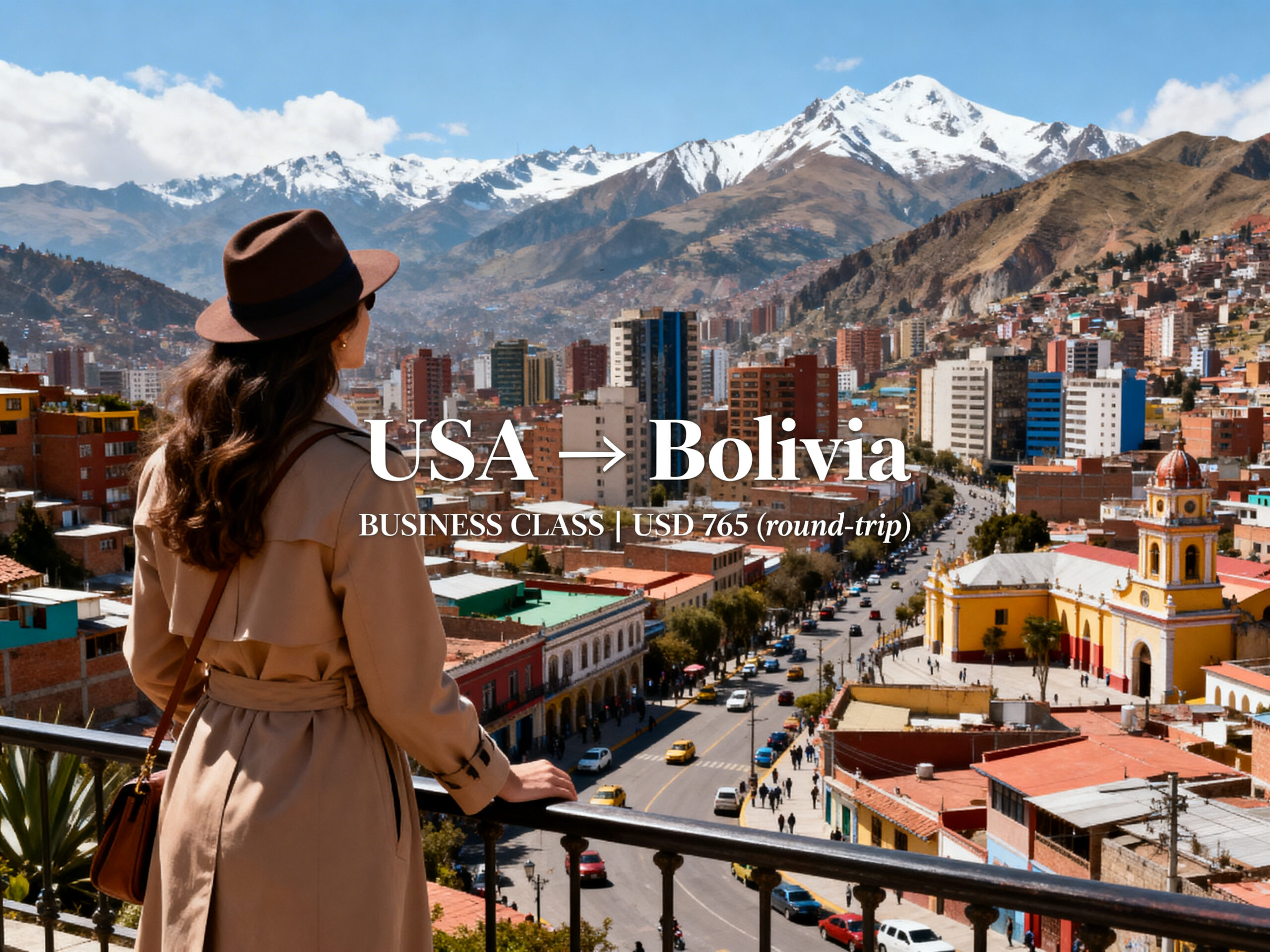 Fly in BUSINESS CLASS from the USA to Bolivia from just US$ 765 (round-trip)