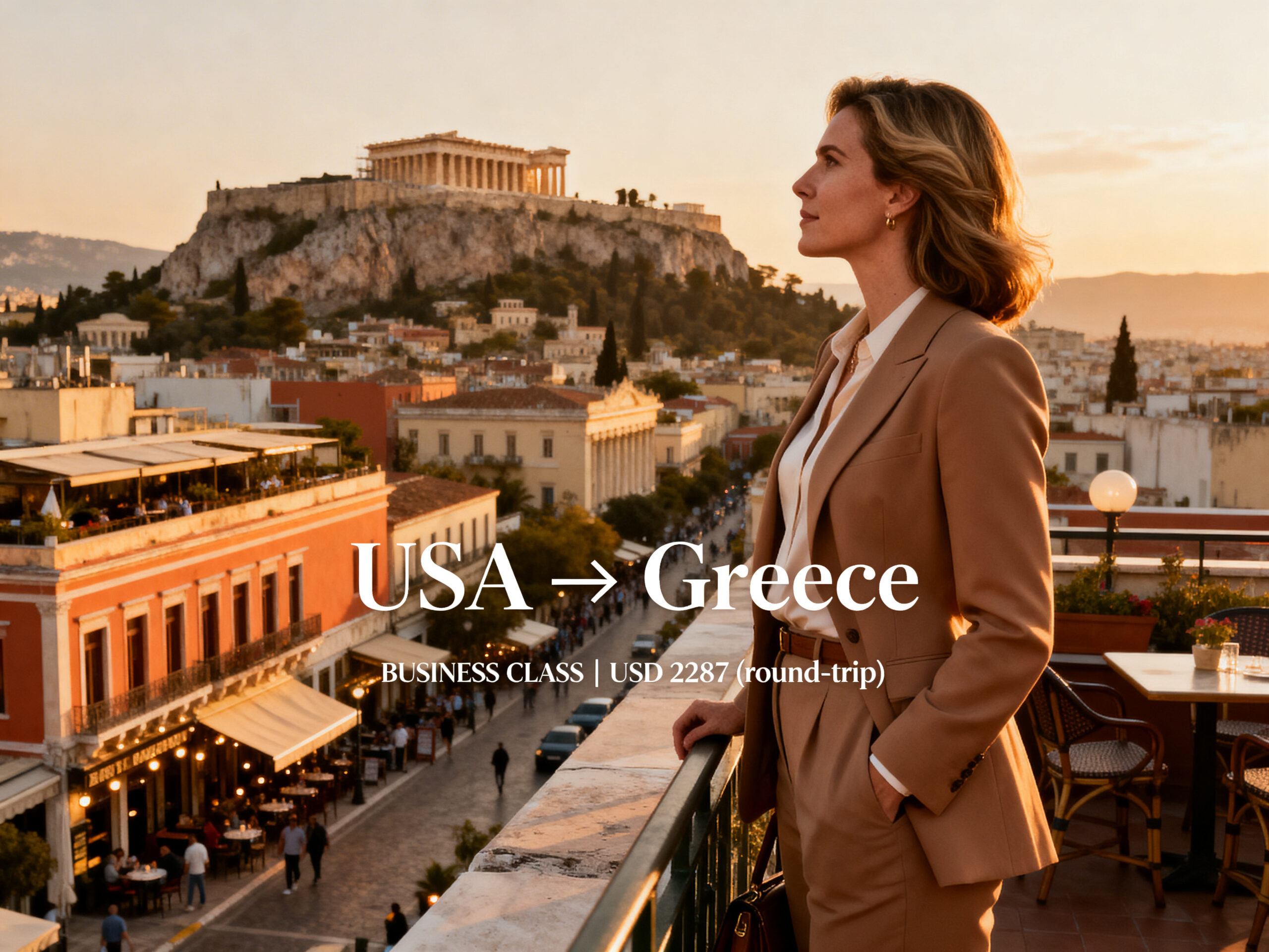 Fly in BUSINESS CLASS from the USA to Greece for just US$ 2,287 (round-trip)