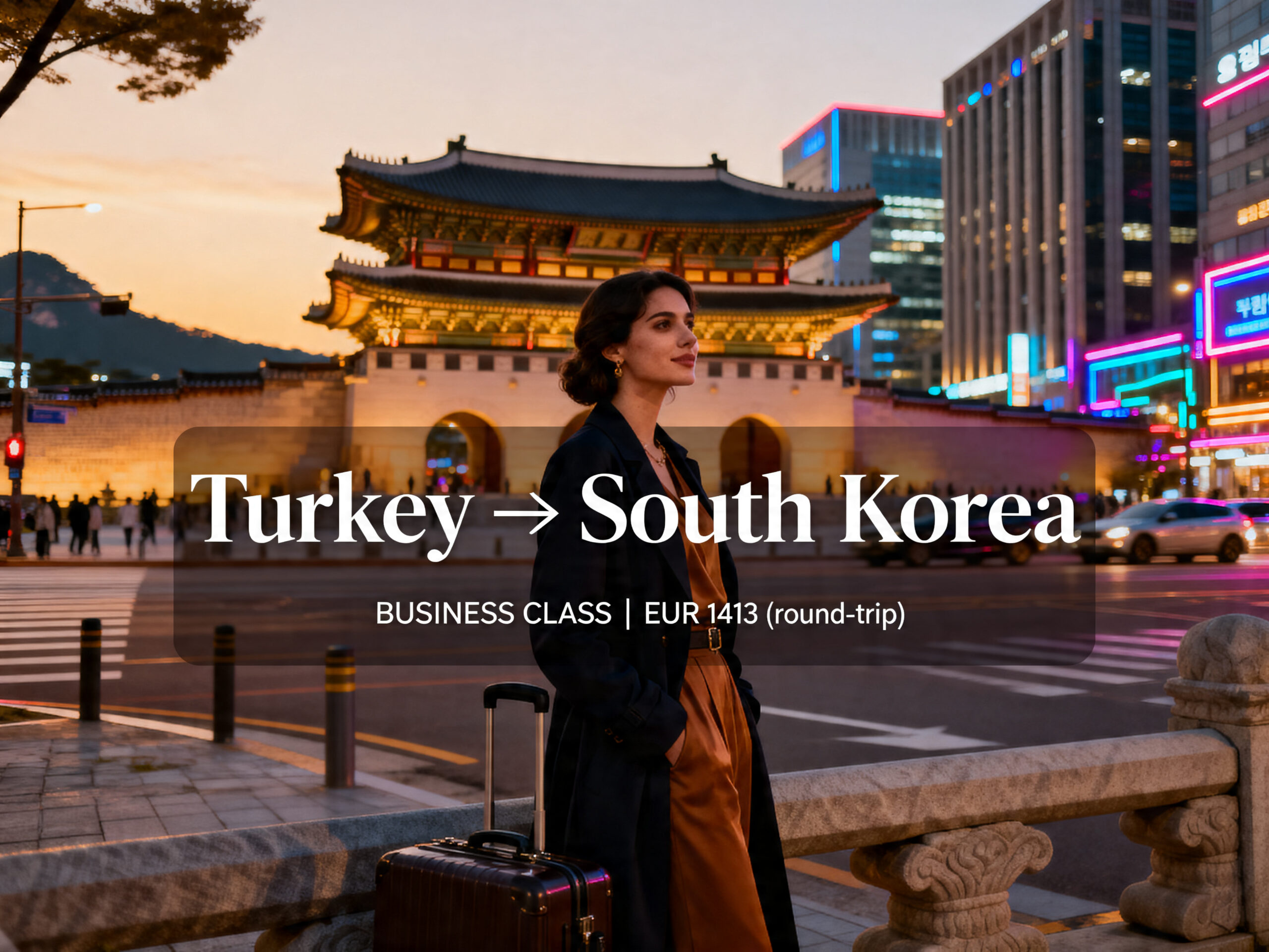 Currently, you can book cheap Business Class flights from Turkey to South Korea for just €1,413 (round-trip).