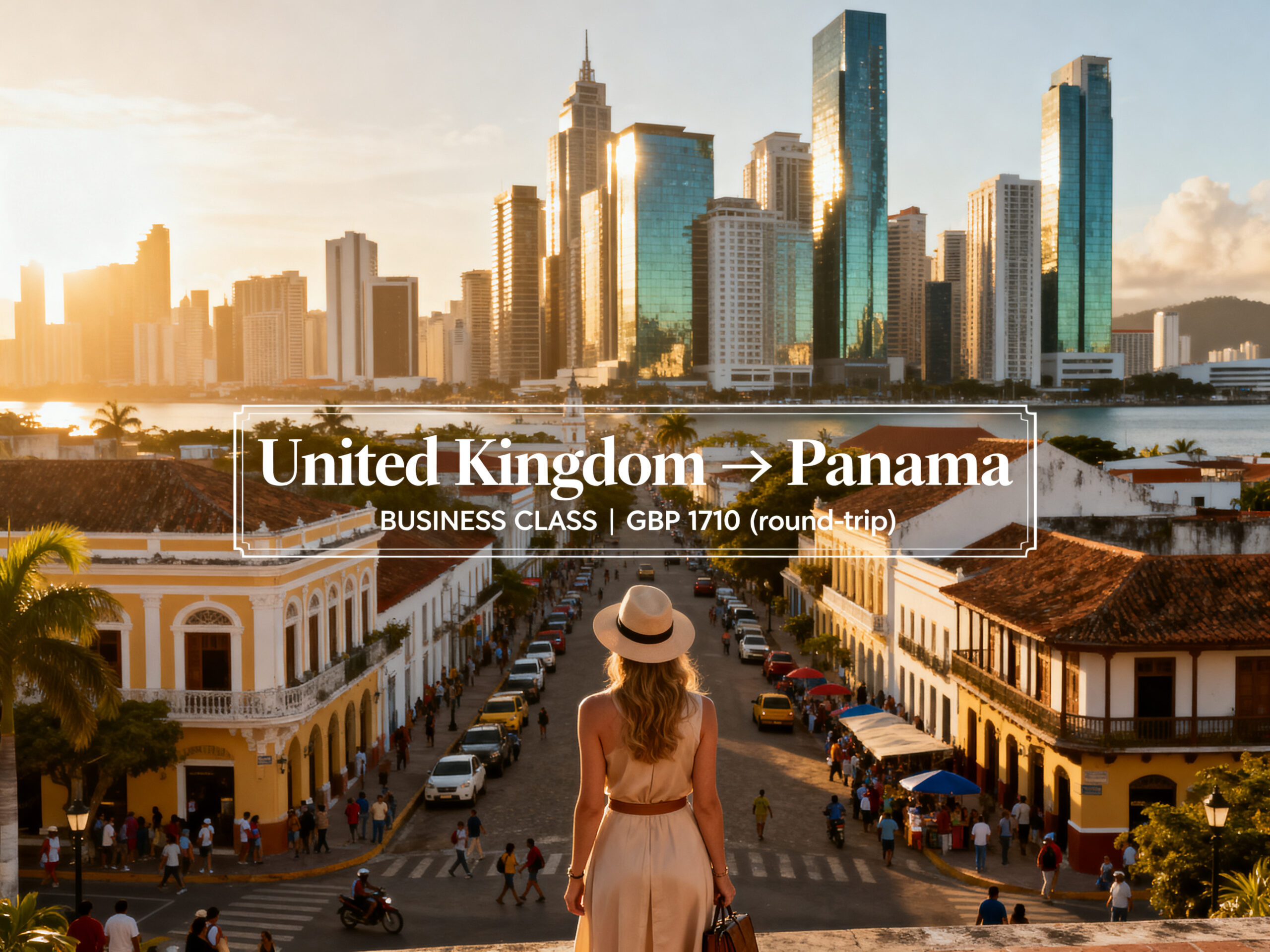We found good BUSINESS CLASS fares from the United Kingdom to Panama starting from only £1,710 (round-trip), about 39% off the usual price!