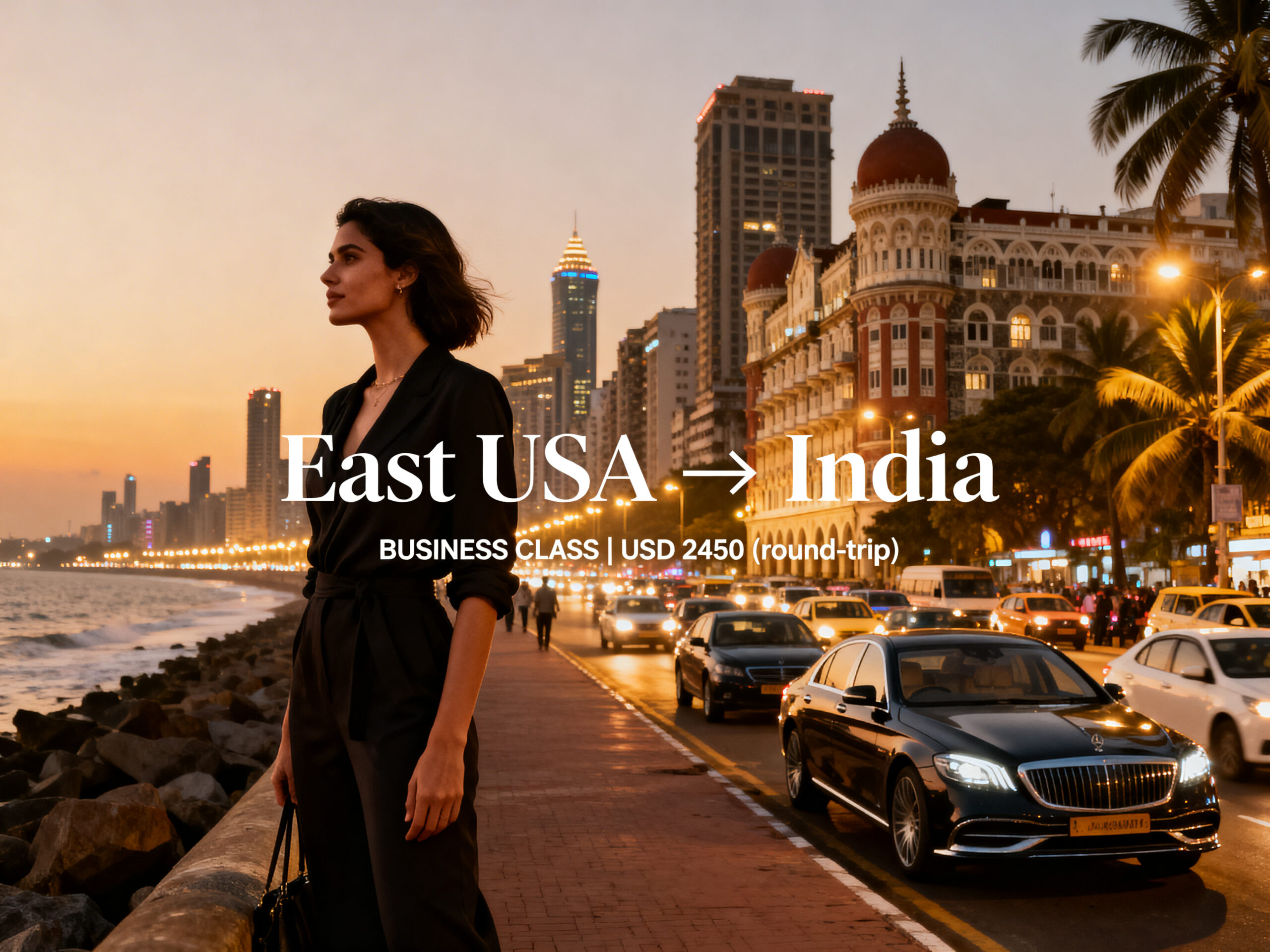 Fly in BUSINESS CLASS from USA to India for just US$ 2,450 (round-trip)