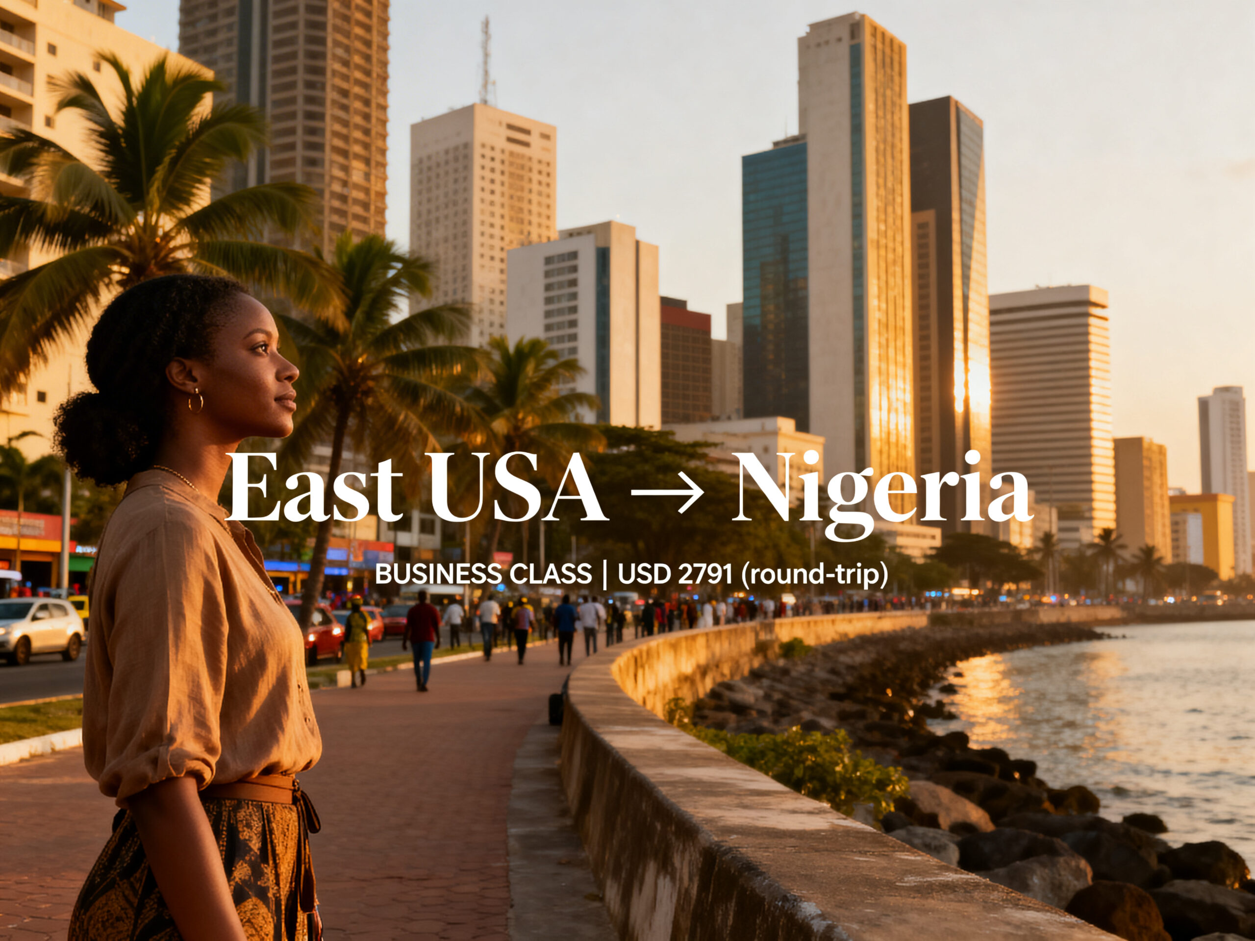 Fly in BUSINESS CLASS from USA to Nigeria for only US$ 2,791 (round-trip)