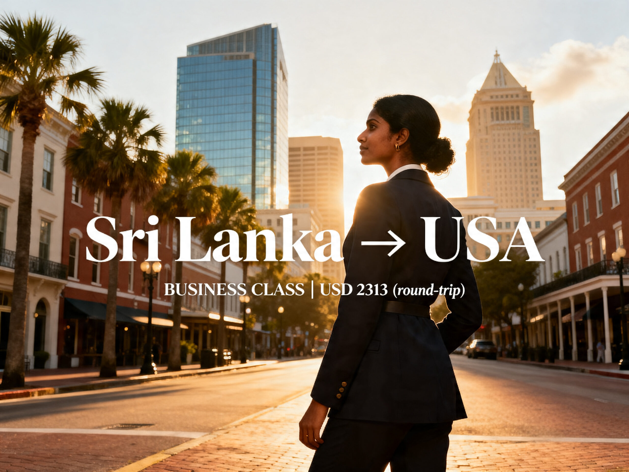 Fly in top BUSINESS CLASS from Sri Lanka to Florida, USA only US$ 2,313 (round-trip)