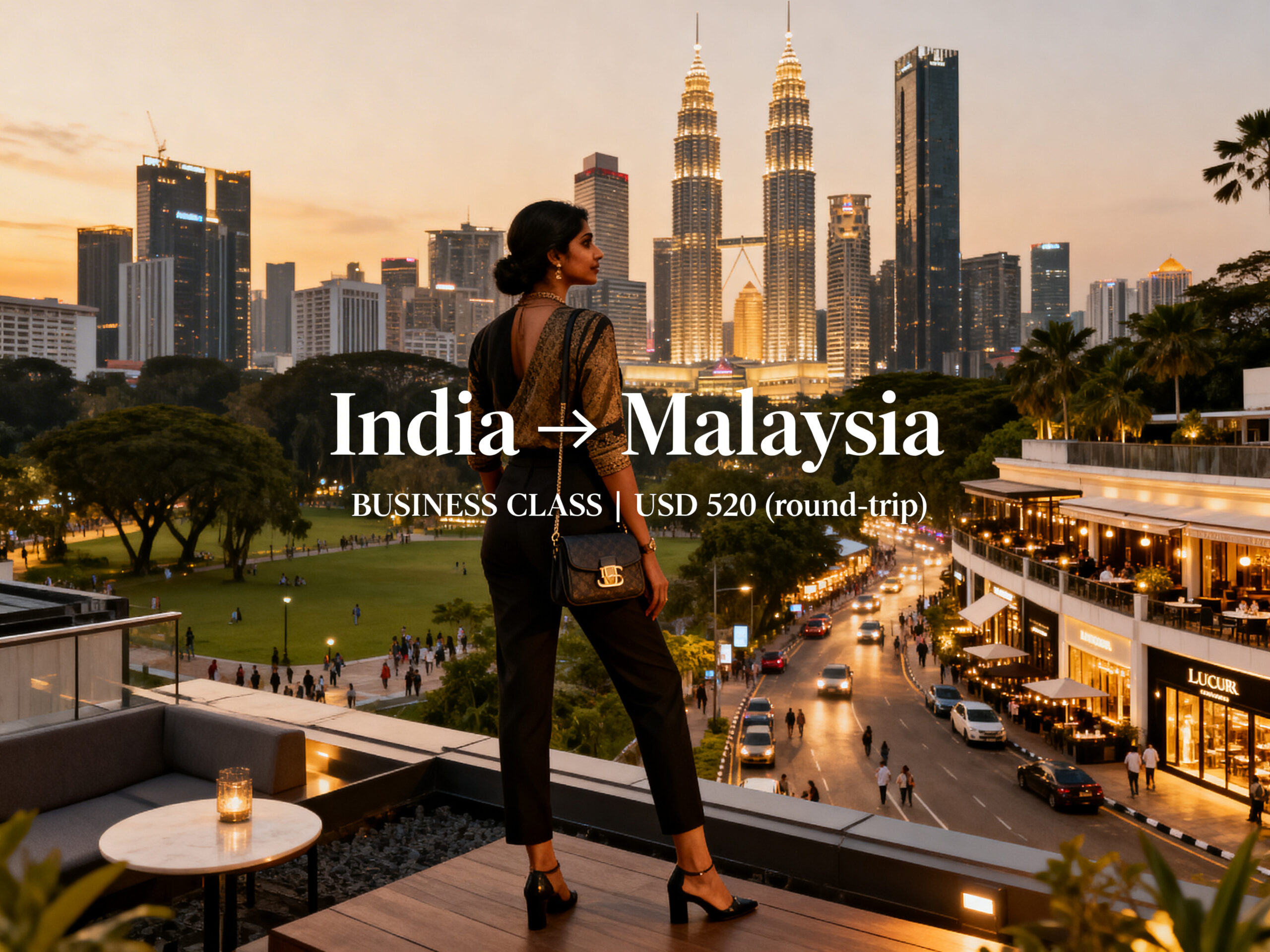 Fly NONSTOP from India to Malaysia in BUSINESS CLASS from US$520 (round-trip)