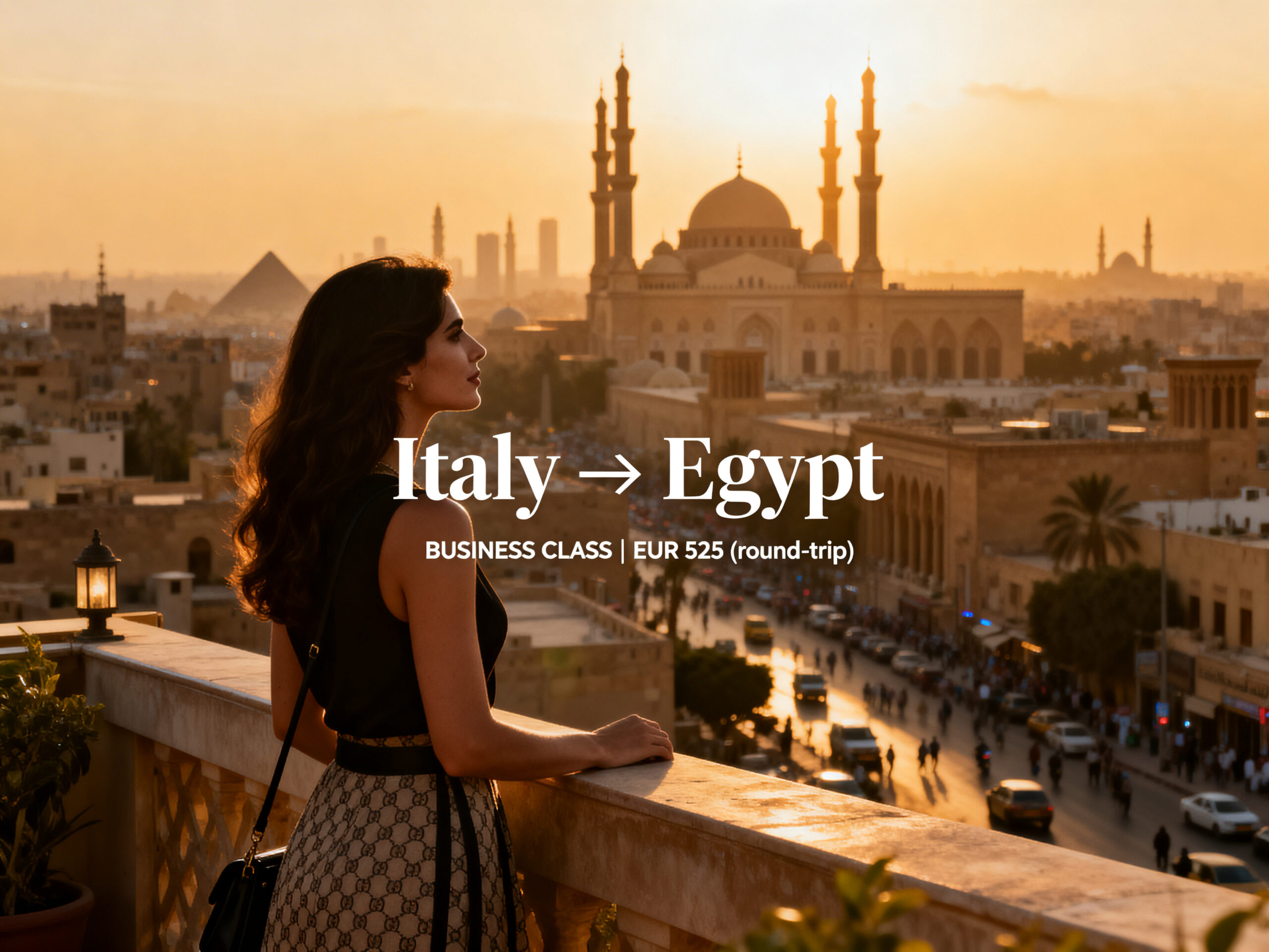 We found good nonstop BUSINESS CLASS fares from Italy to Egypt starting from only €525 (round-trip).