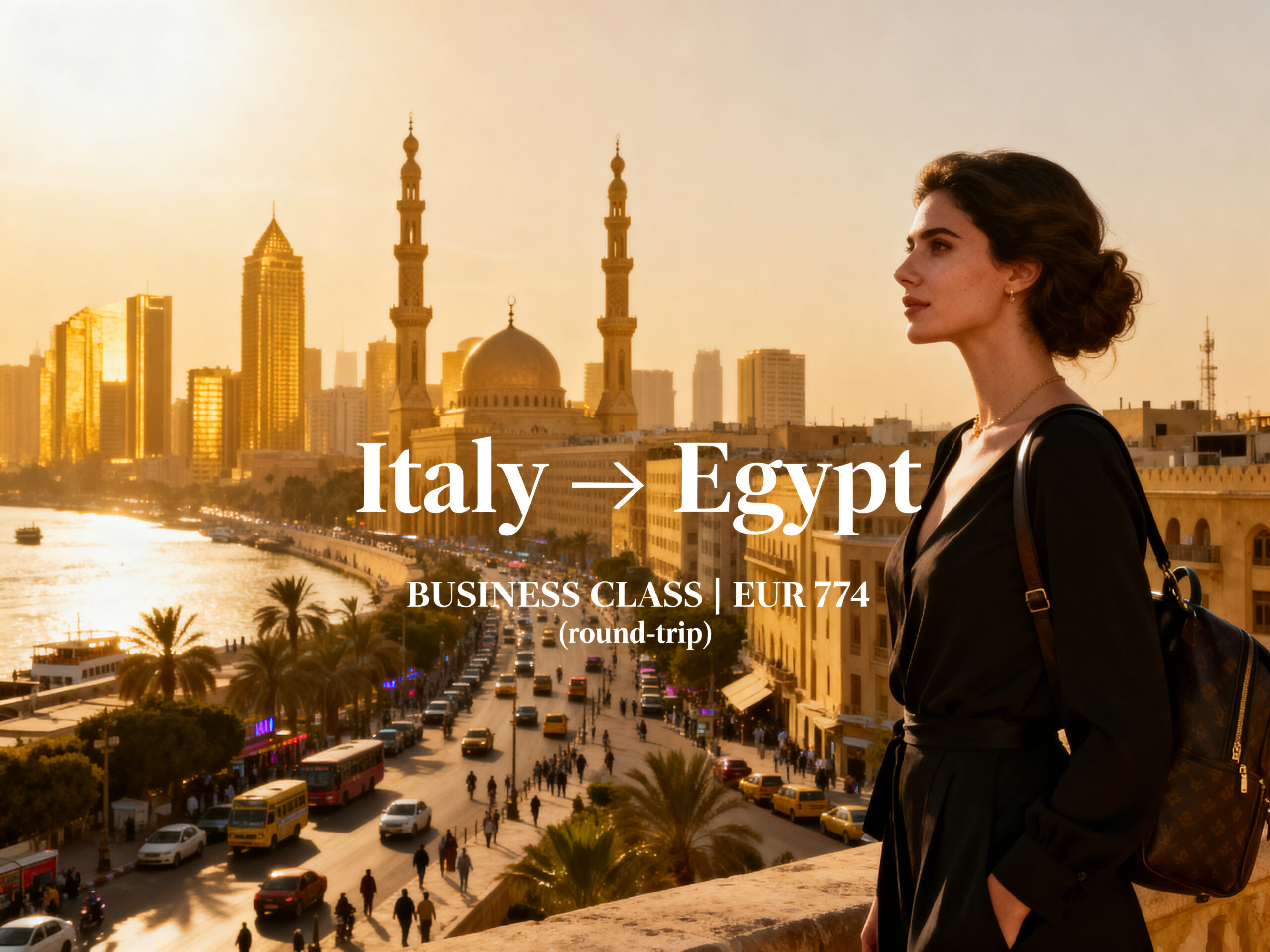 We found good nonstop BUSINESS CLASS fares from Italy to Egypt starting from only €774 (round-trip).