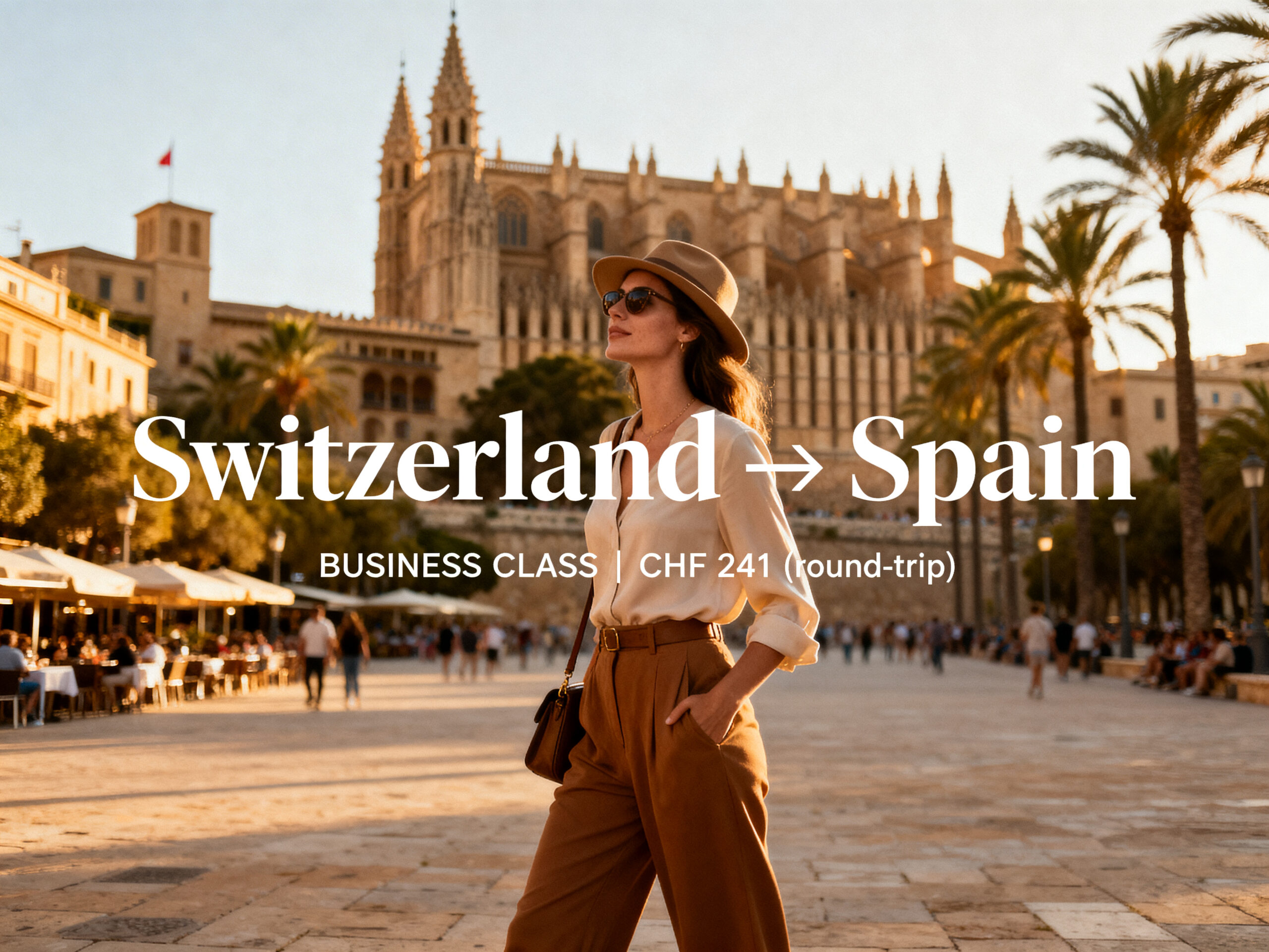 Fly nonstop in BUSINESS CLASS from Switzerland to Mallorca, Spain for only 241 CHF (round trip)