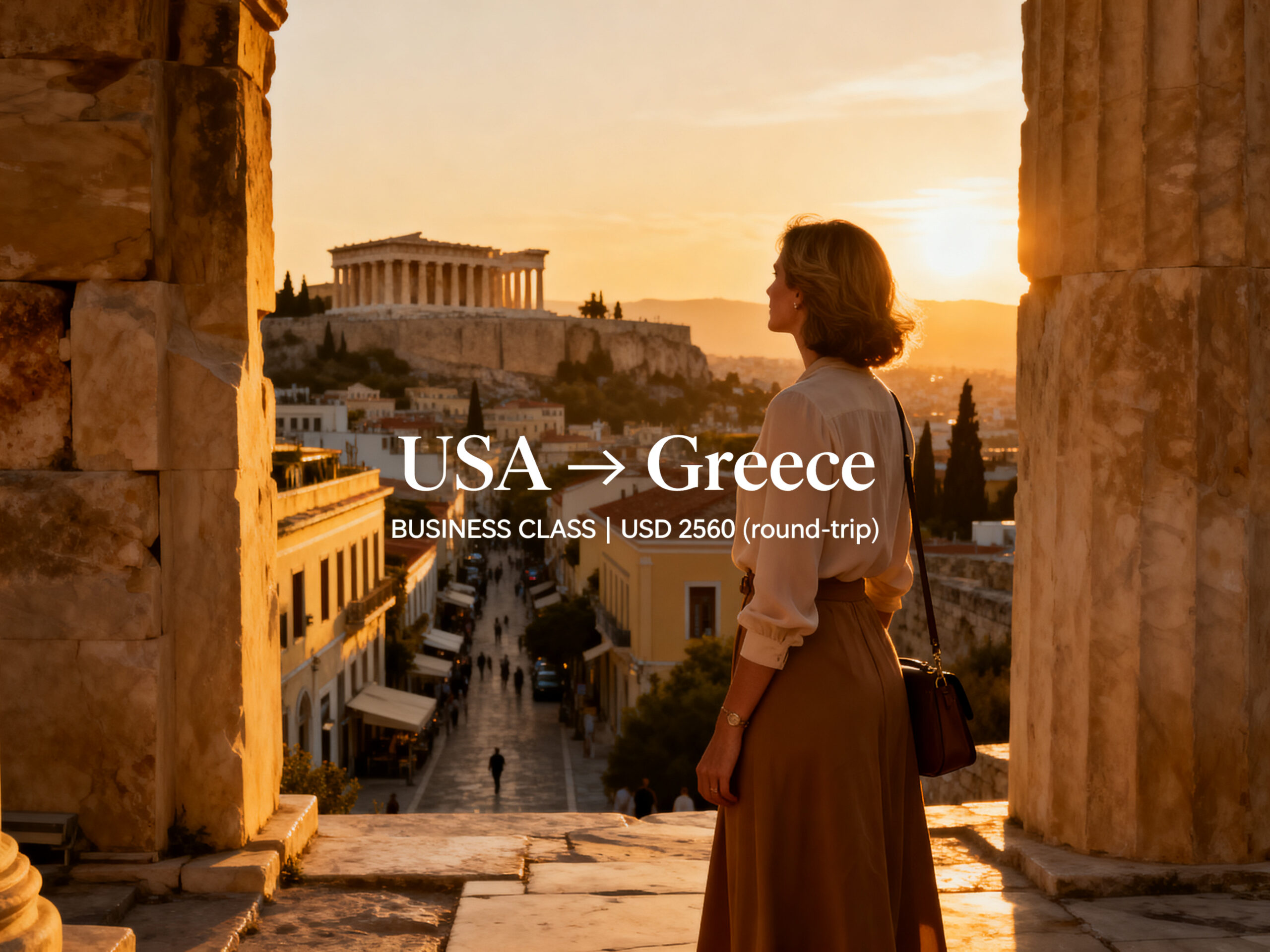 From the USA to Greece in BUSINESS CLASS from US$2,560 (round-trip)!!