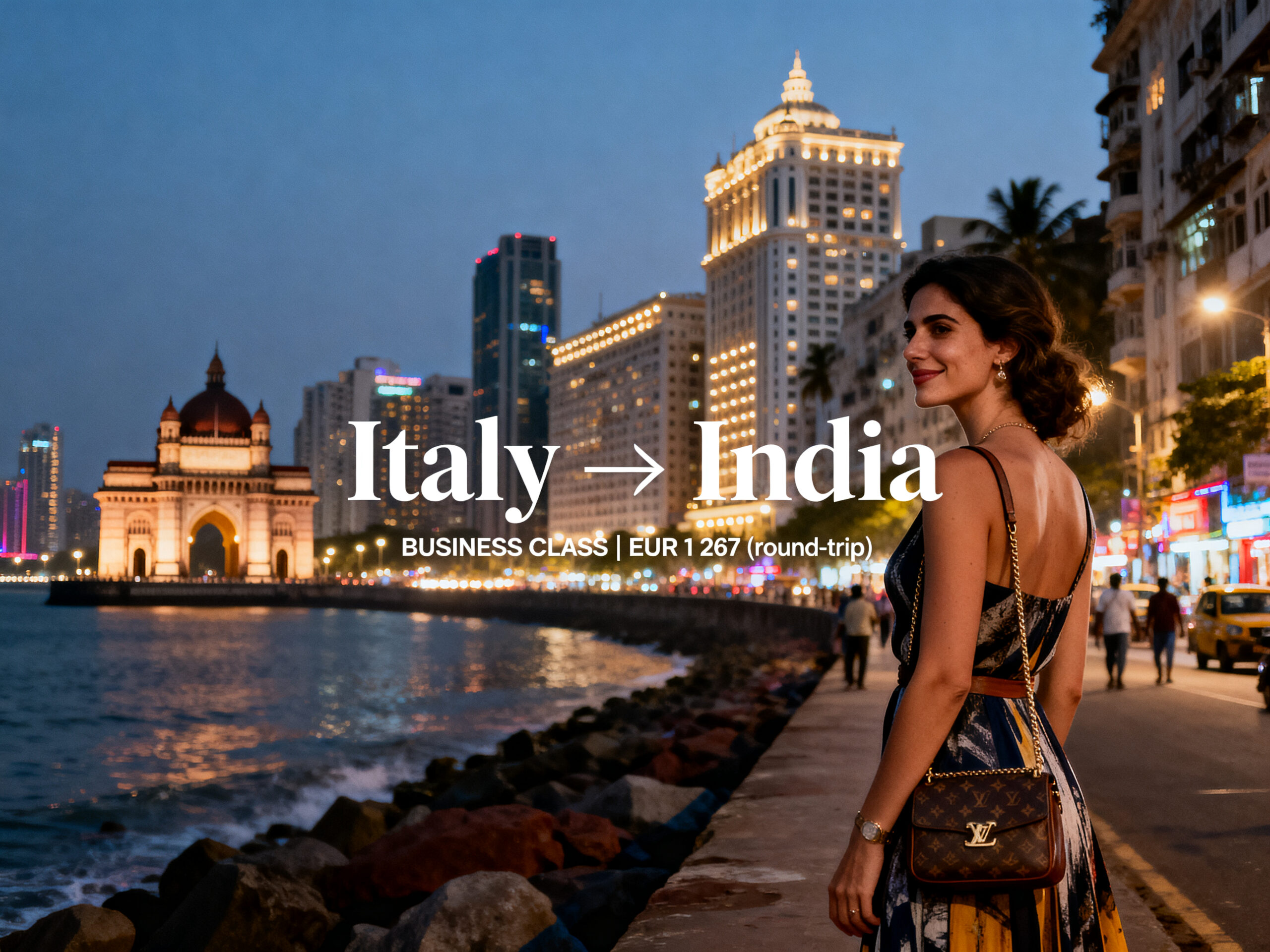 We’ve uncovered a great BUSINESS CLASS deal from Italy to India for only €1,267 (round-trip)—saving you a massive 40% off the usual fare!
