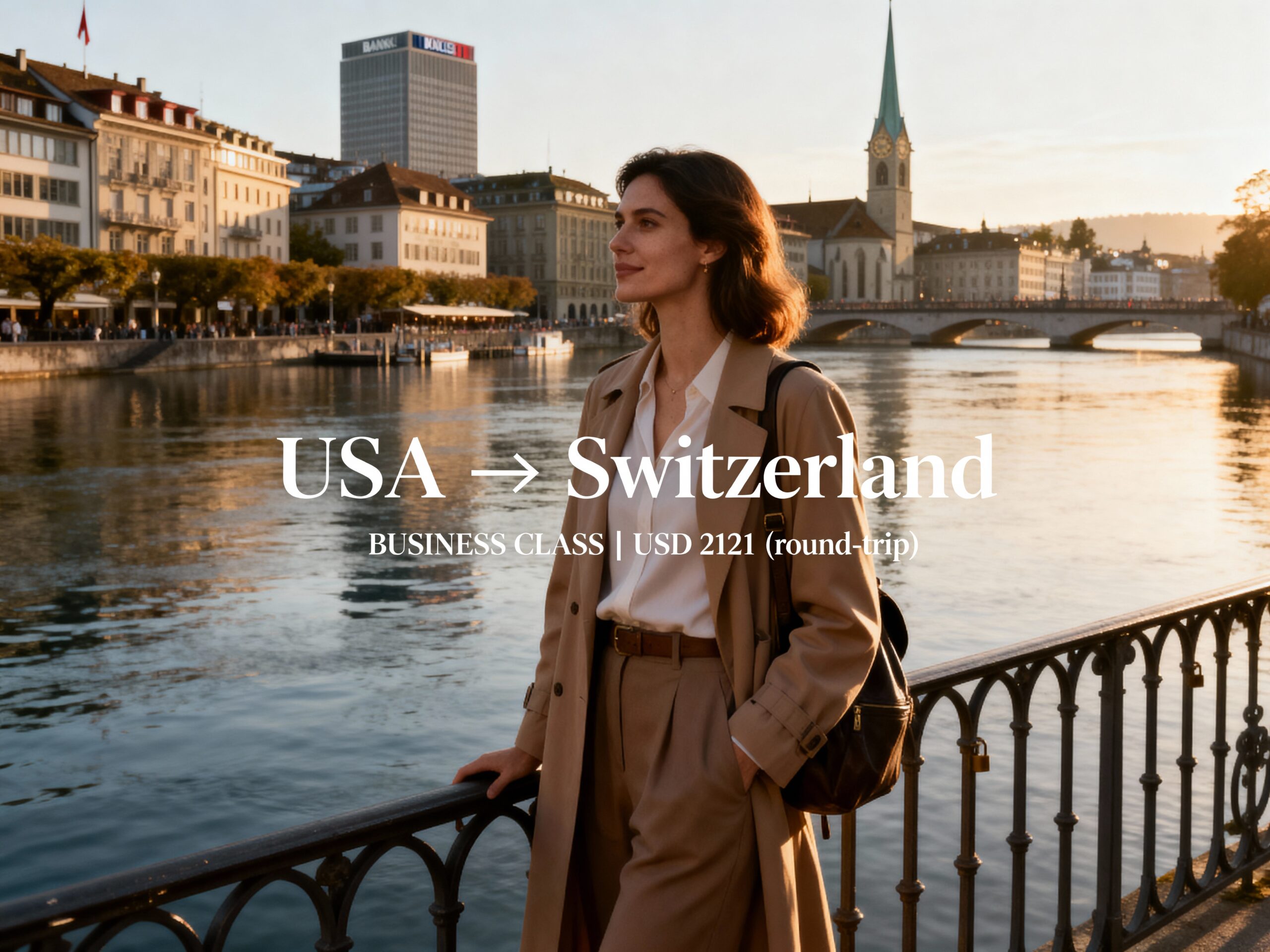 Hot! Fly in BUSINESS CLASS from USA to Switzerland for just US$ 2,121 (round-trip)