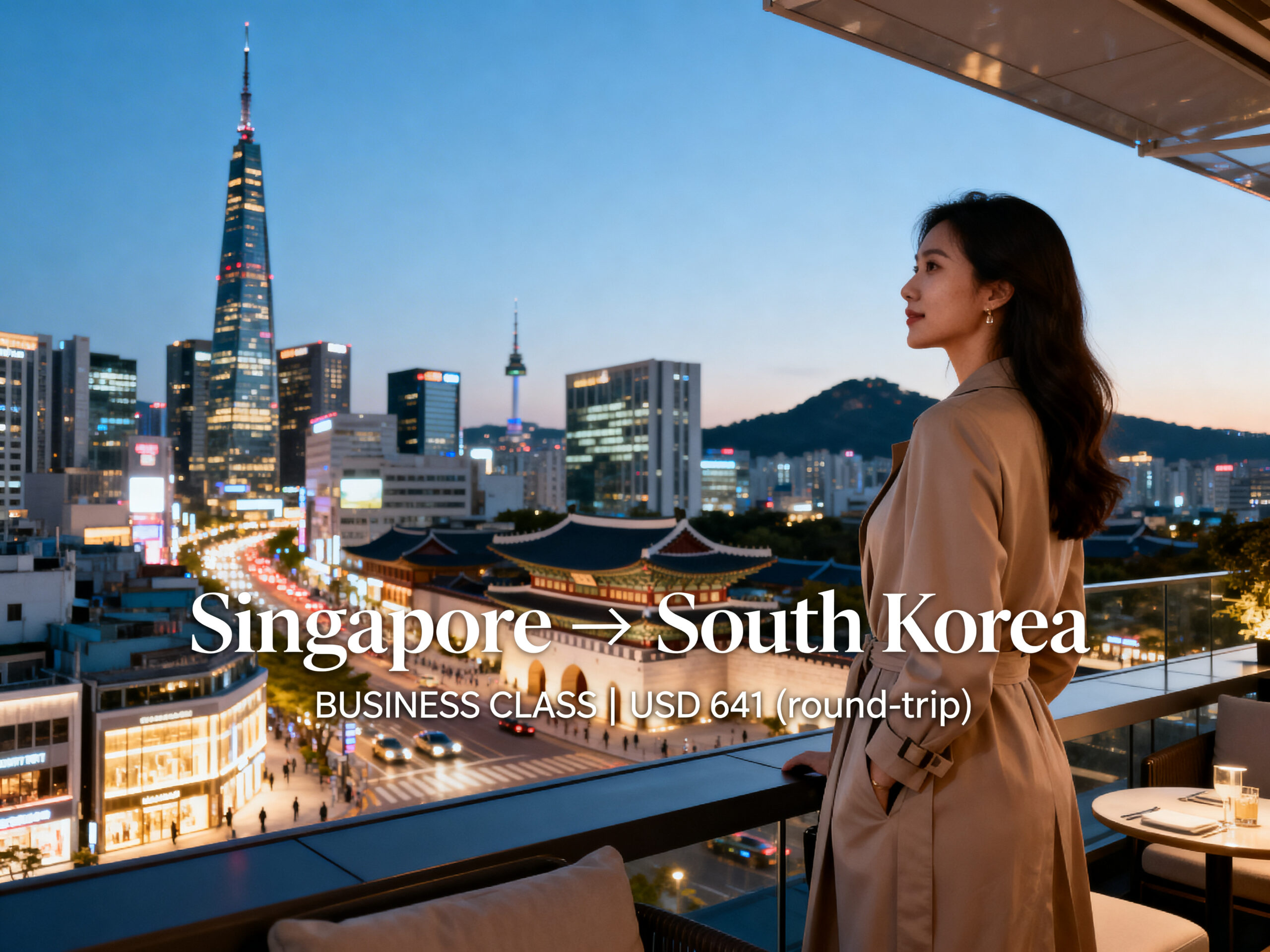 Score an incredible Business Class deal from Singapore to South Korea for just US$641 return (48% OFF!) — the perfect excuse to experience dynamic Seoul, seaside Busan, timeless Gyeongju, and breathtaking Jeju Island in comfort and style.