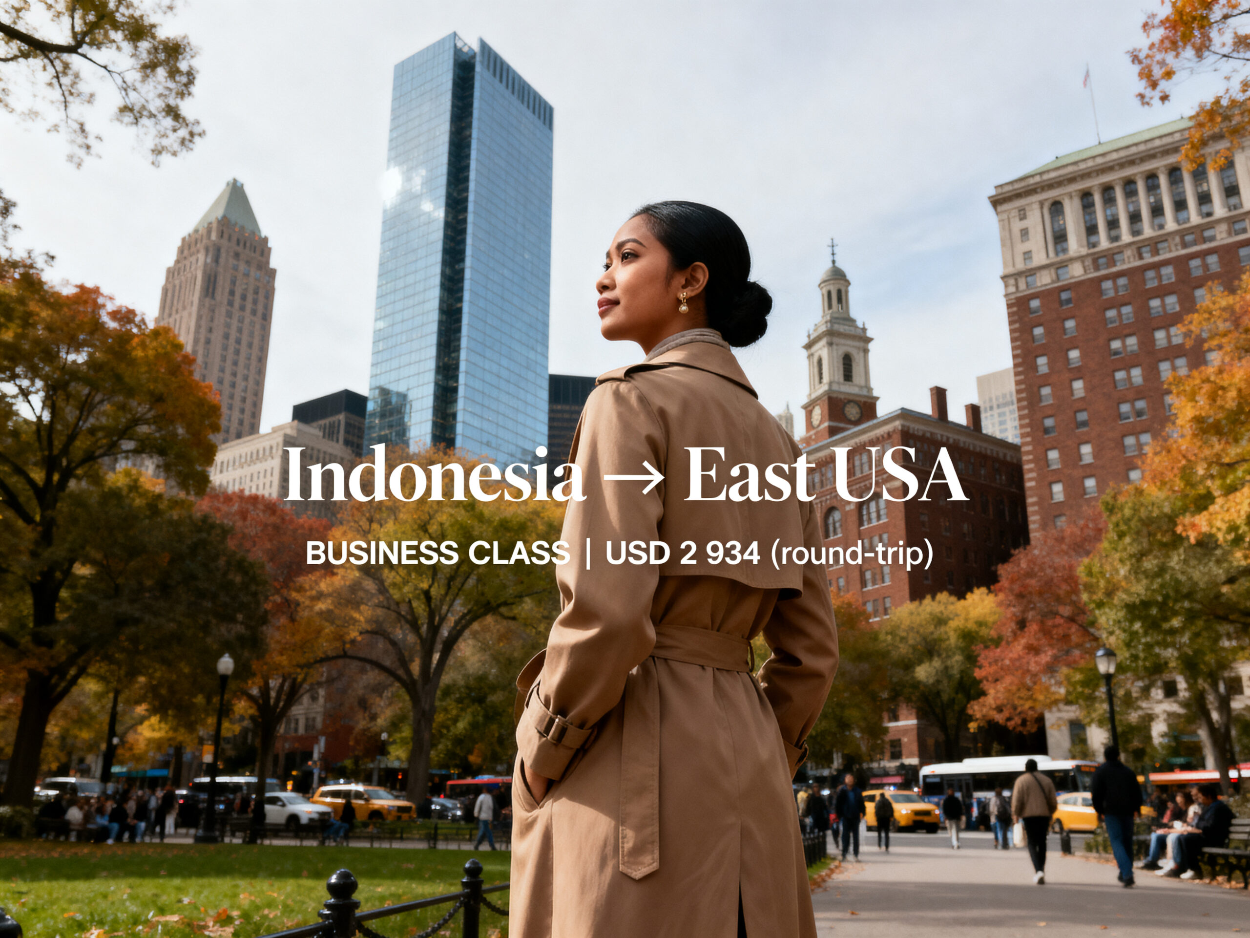 In 5* BUSINESS CLASS Suites from Indonesia to East Coast, USA from US$ 2,934 (round-trip)