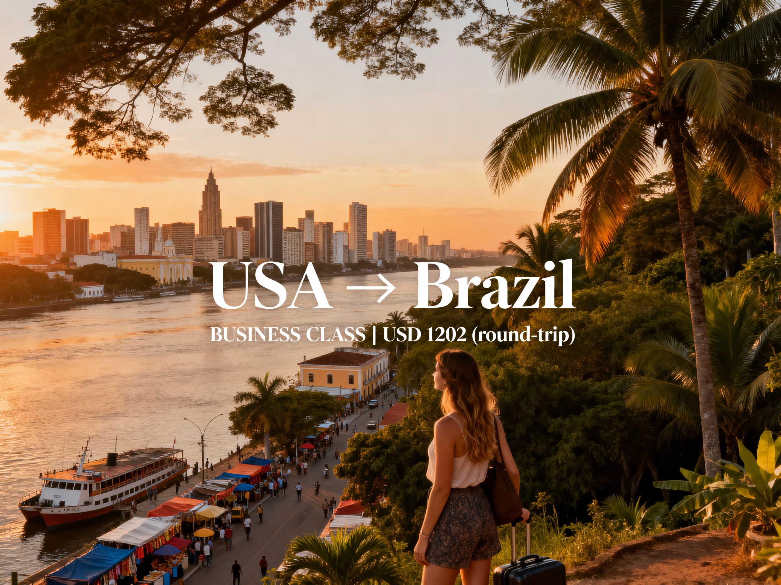 We found cheap Business Class flights from California to Amazonas, Brazil for just US$1,202 (round-trip). Flights are available until 2025.