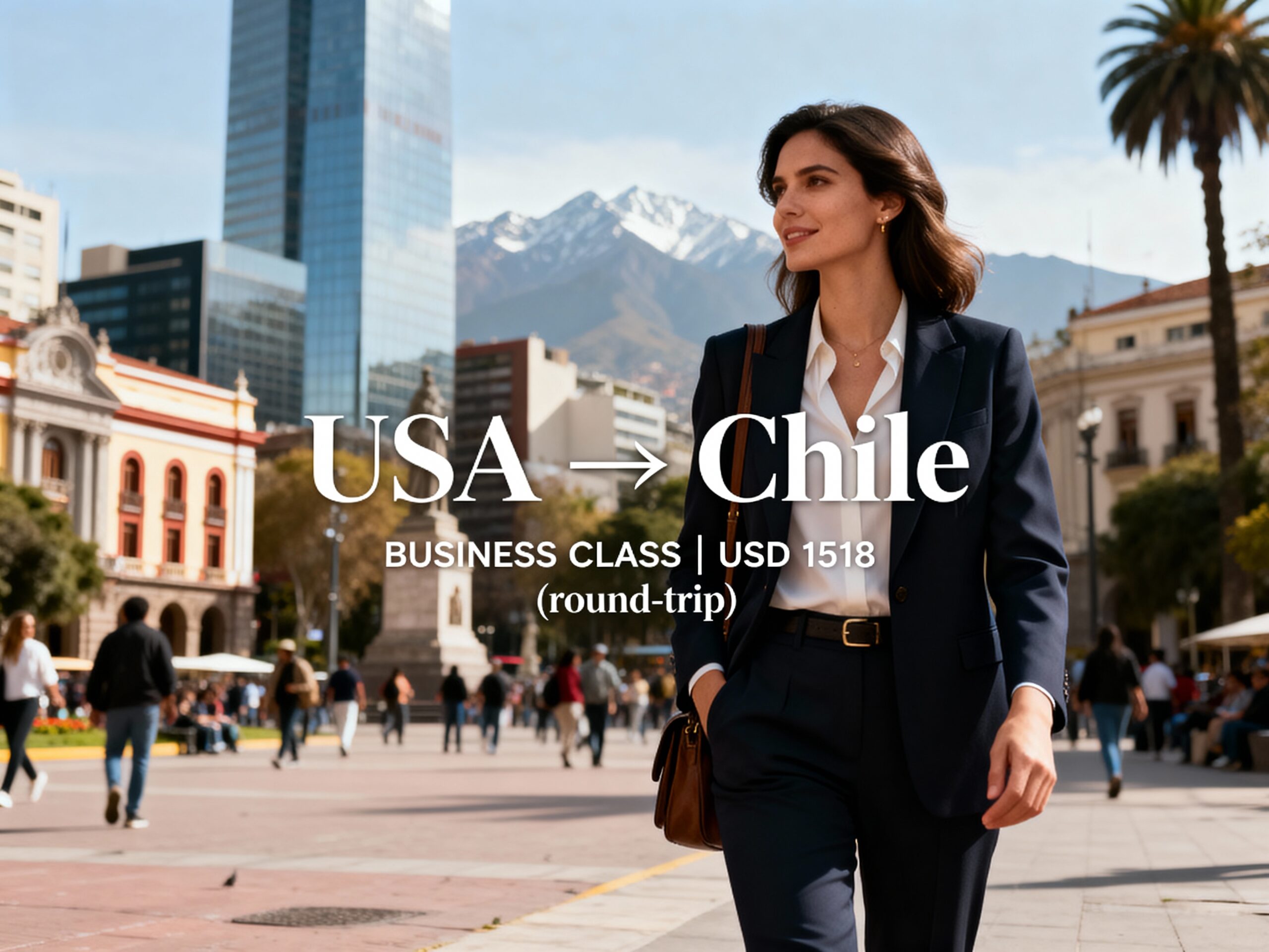 In BUSINESS CLASS from Illinois, USA to Chile for only US$ 1,518 (round-trip)!