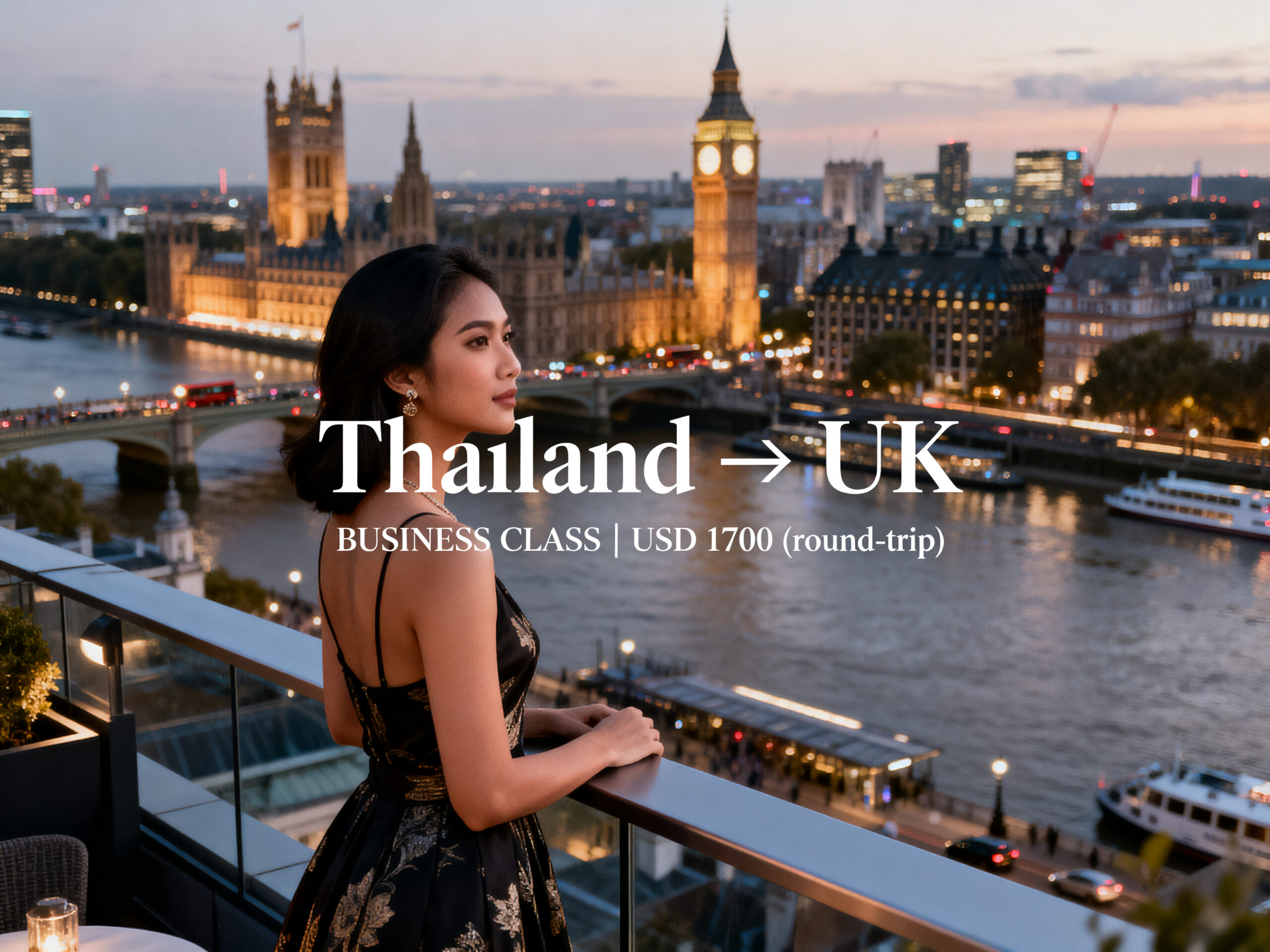 In Etihad BUSINESS CLASS from Thailand to UK starting from US$ 1,700 (round-trip)