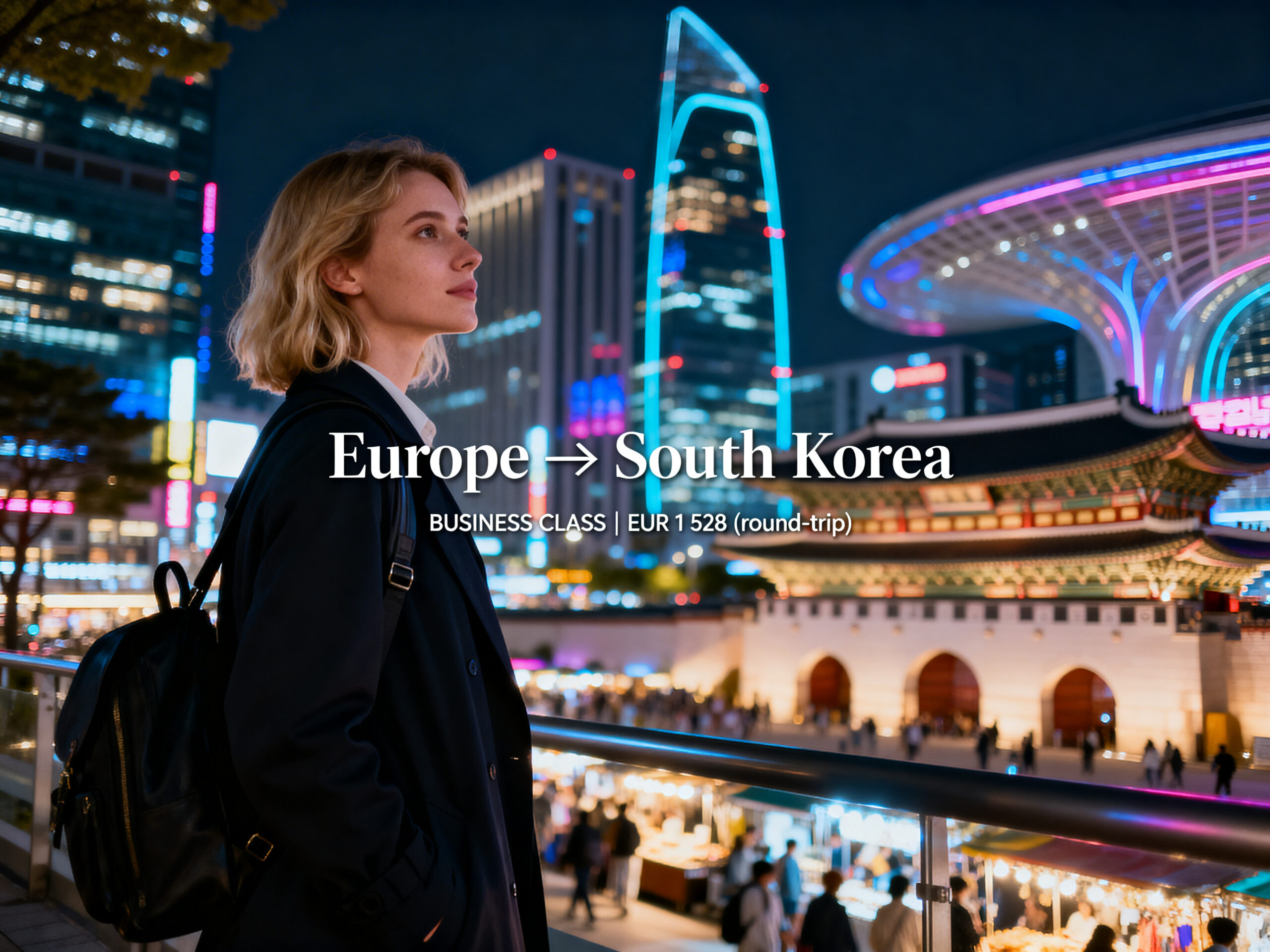 — Stroll vibrant Seoul’s neon-lit streets, discover serene palaces and temples, and savour Korea’s legendary cuisine in total comfort. Don’t miss out!